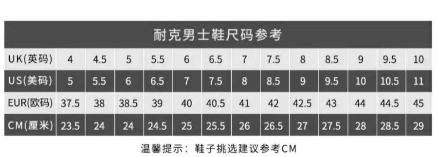미국, 영국, 유럽 사이즈만 잔뜩 적어놨습니다.