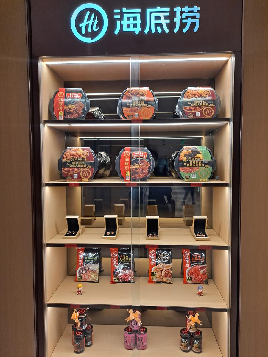 하이디라오 브랜드에서 출시한 인스턴트 제품이 전시되어 있습니다.
