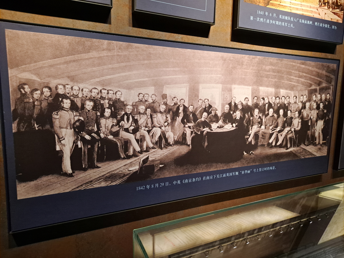 치욕적으로 체결된 남경 조약의 순간들도 전시되어 있습니다.