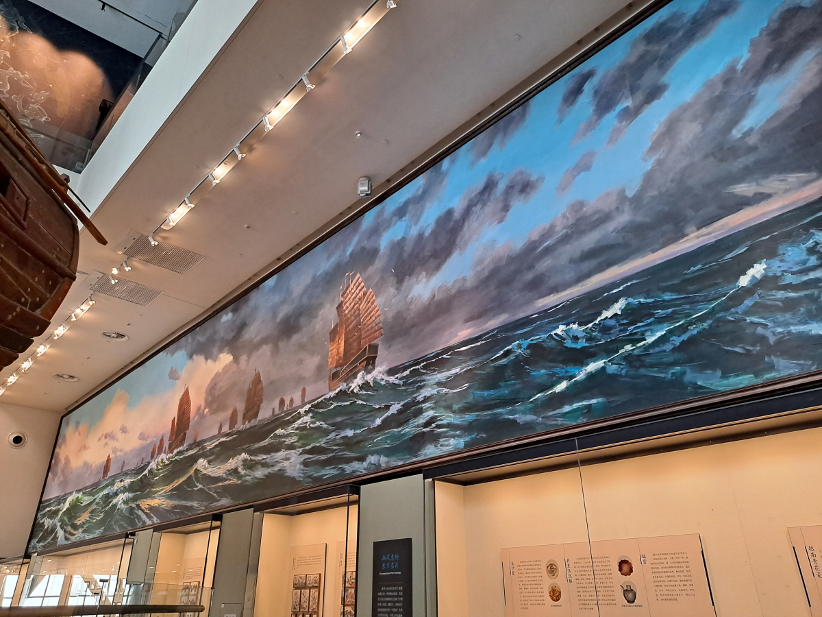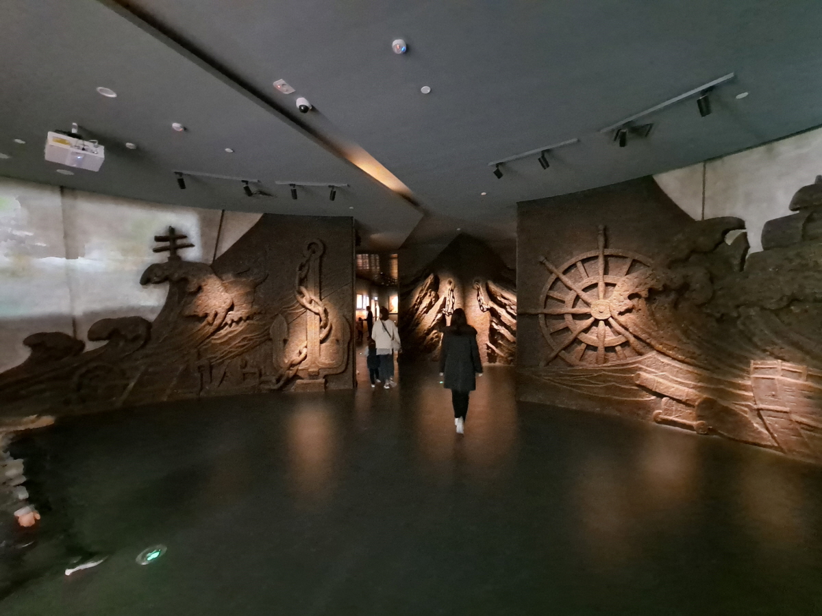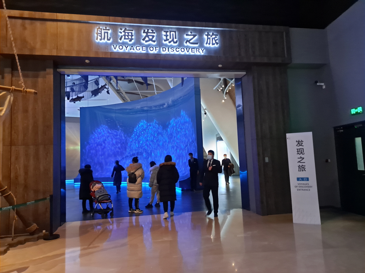 유럽보다 경제, 군사력이 월등했던 시절 압도적인 스케일의 함대로 동남아와 인도를 거쳐 아프리카까지 항해를 했던 내용들을 전시하고 있으며, 당시 항해를 통해 해양 실크로드 교역로를 확보했고 당시 중국이 세상의 중심임을 확인할 수 있었던 중요한 사건이었기 때문에, 중국 정부에서 공을 들여 강조하고 싶었던 것이 아닐까 생각이 들었습니다.