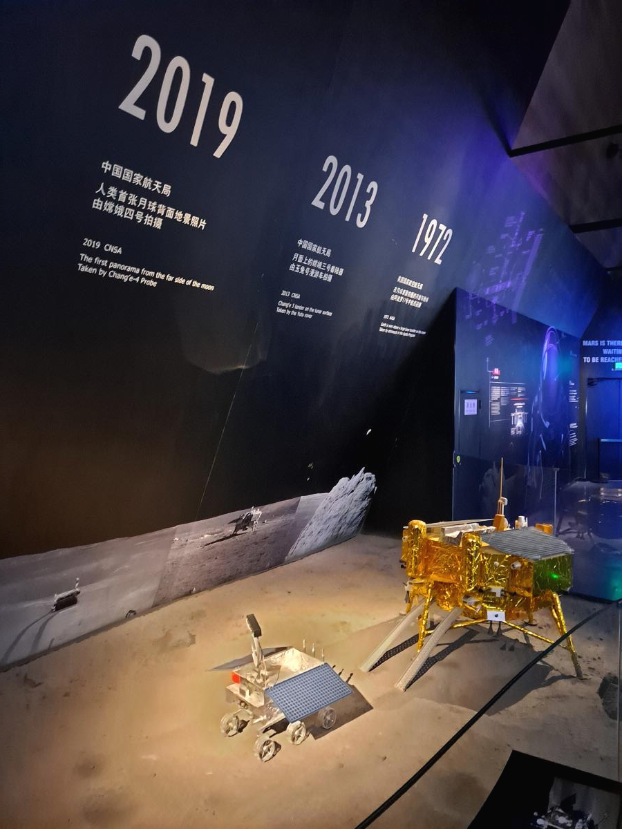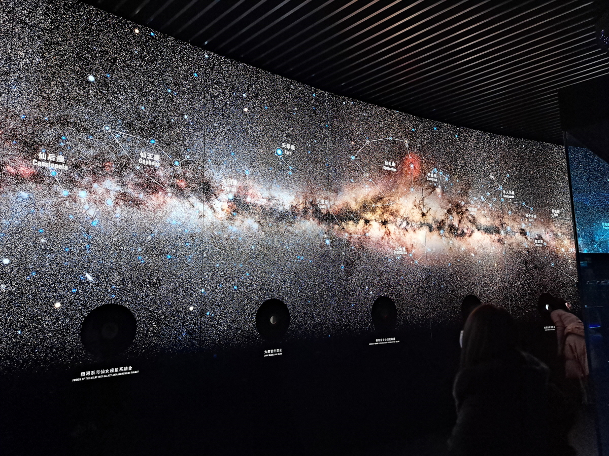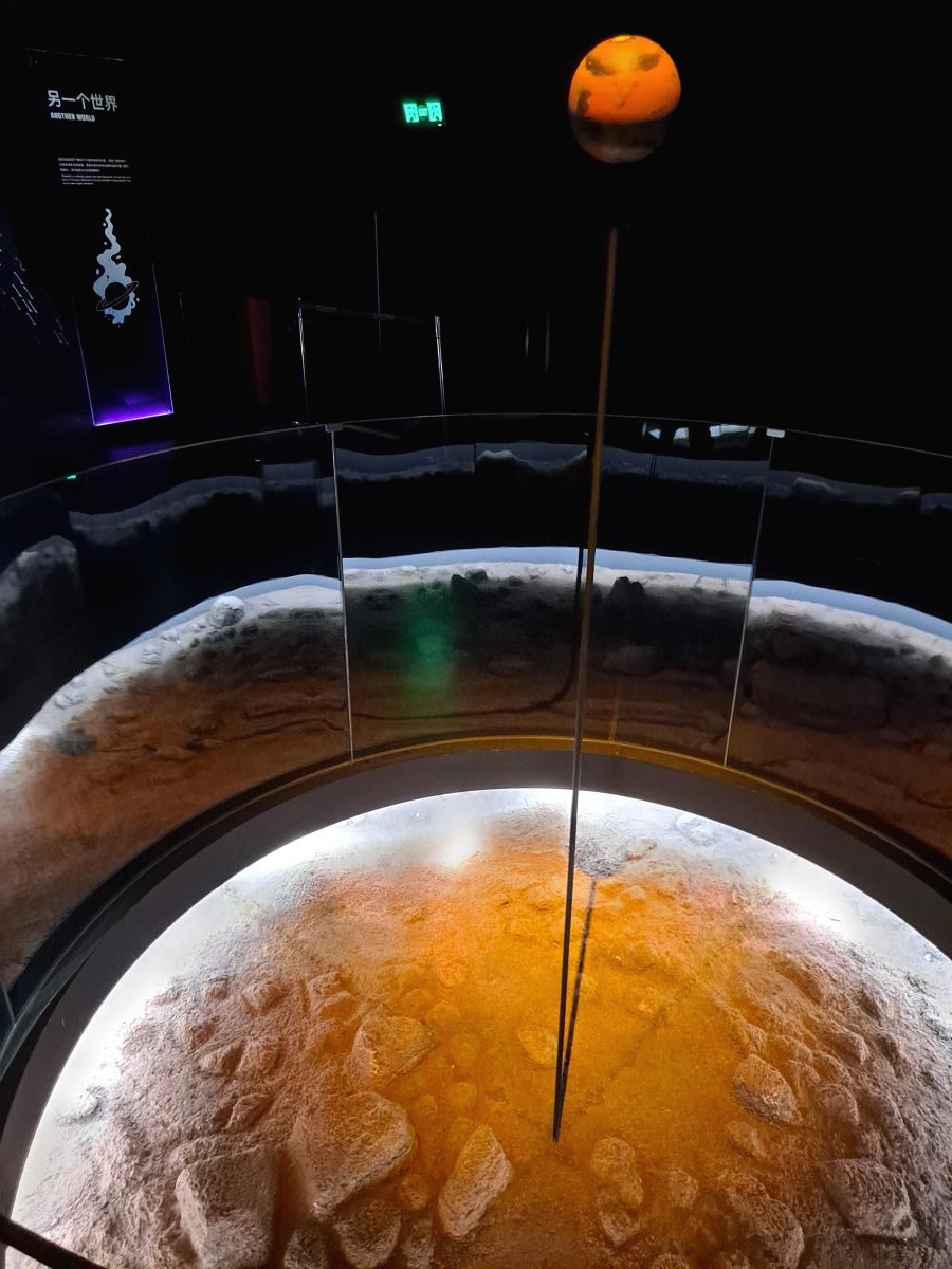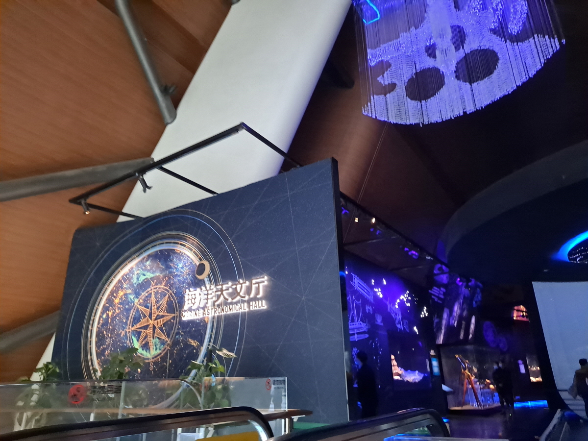 해양박물관에 와서 어느 순간 우주에 관한 전시를 보고 있습니다.