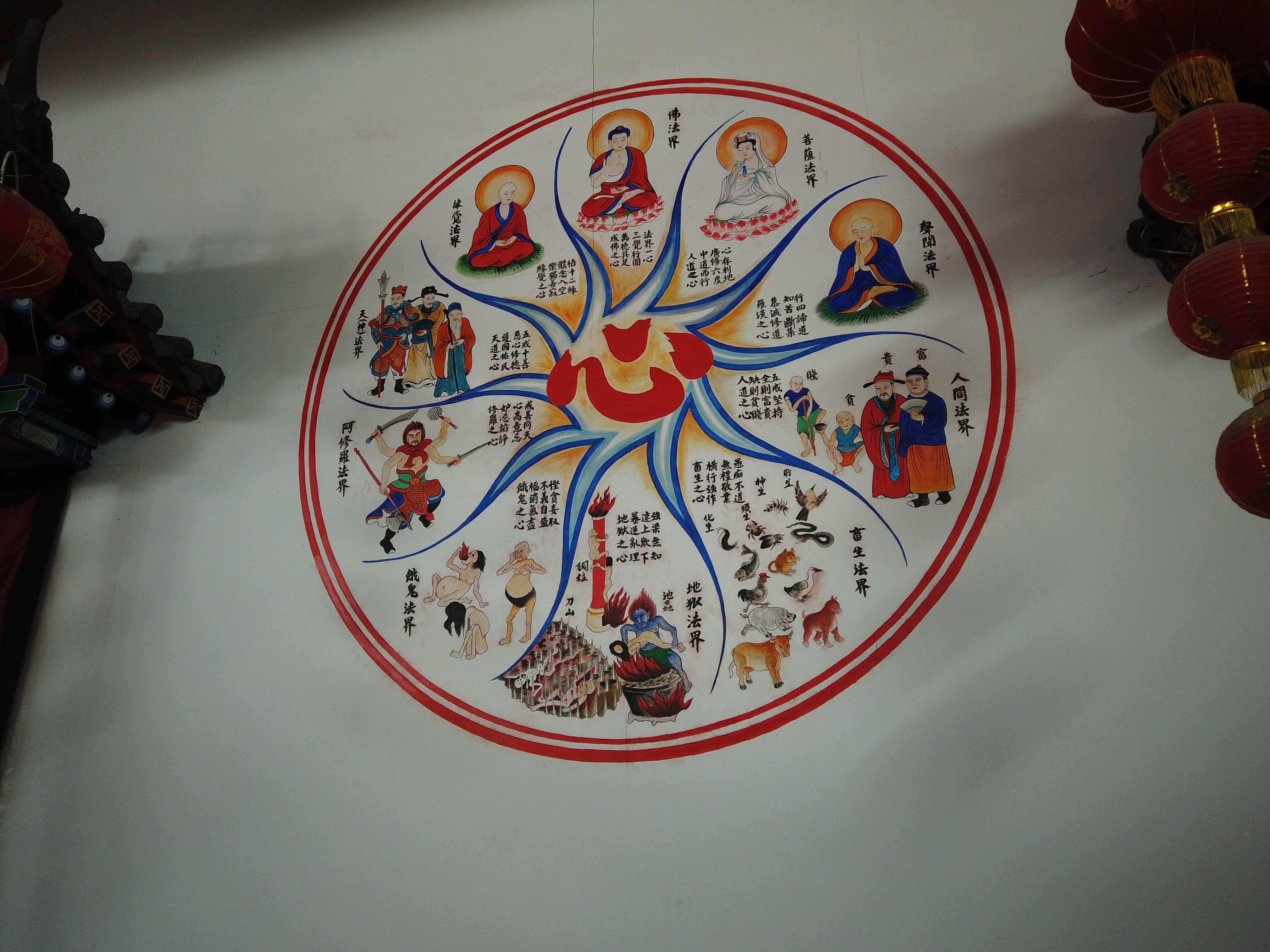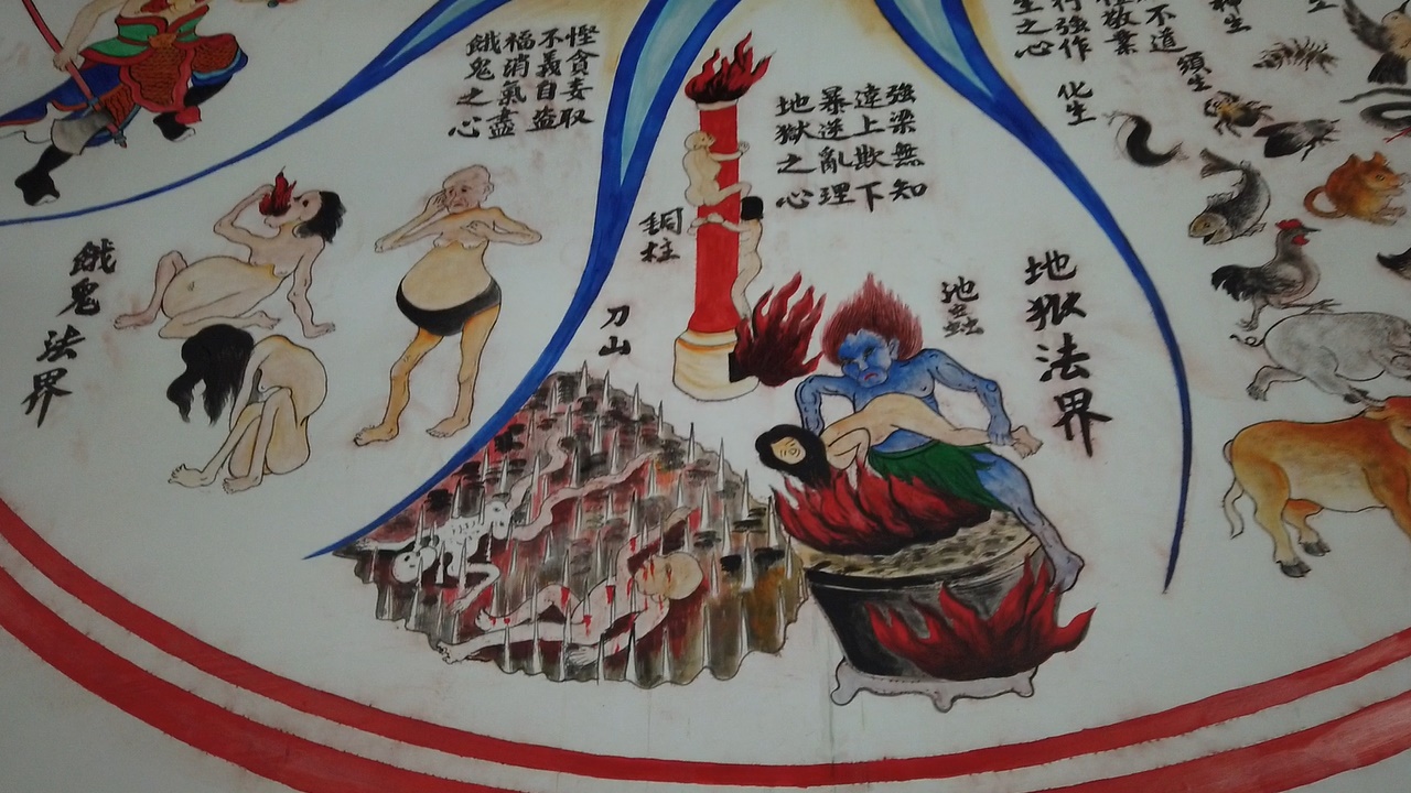 식당 벽에 벽화가 있어서 자세히 보니 지옥을 형상화한 그림이 흥미롭습니다.