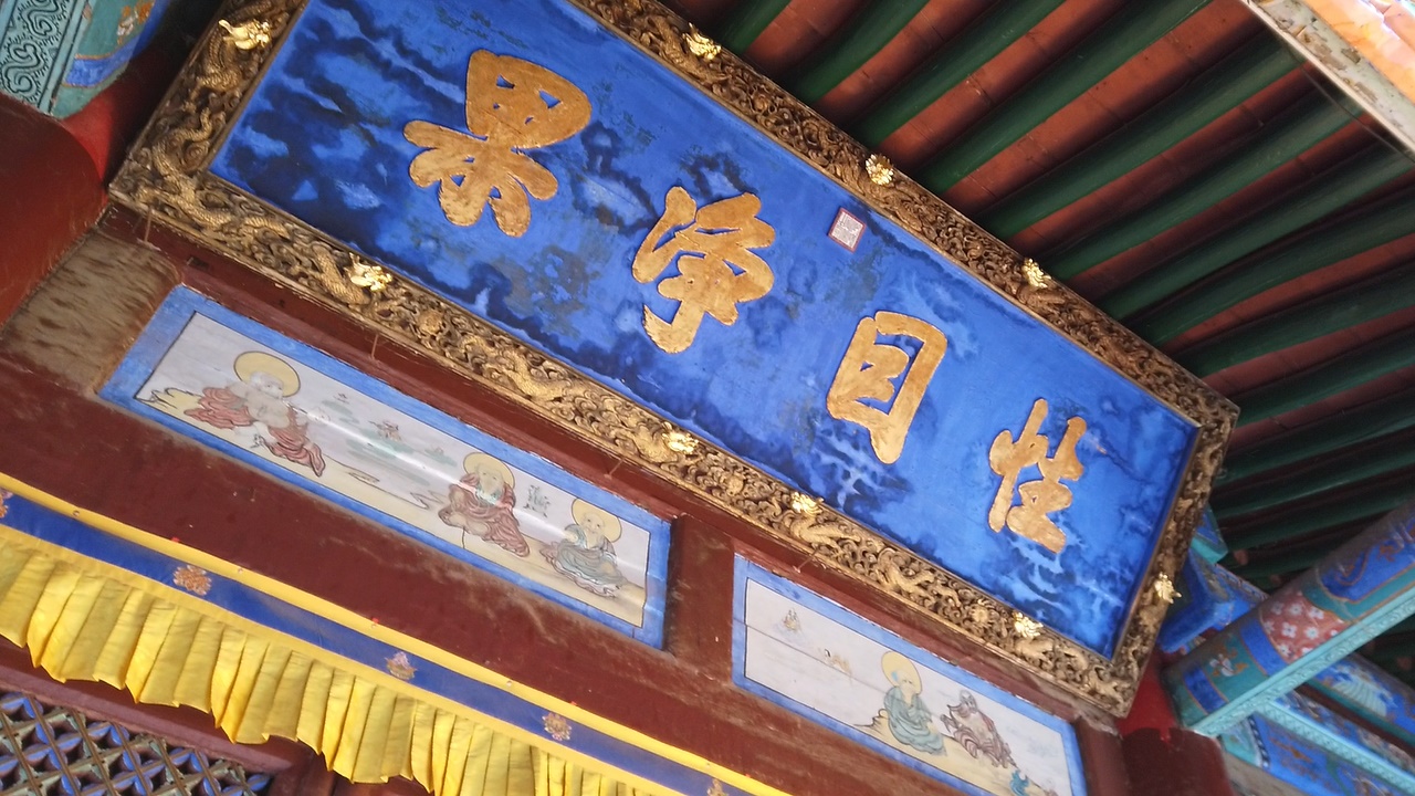 사찰 명판에서부터 라마교 글씨(?)가 보입니다.
