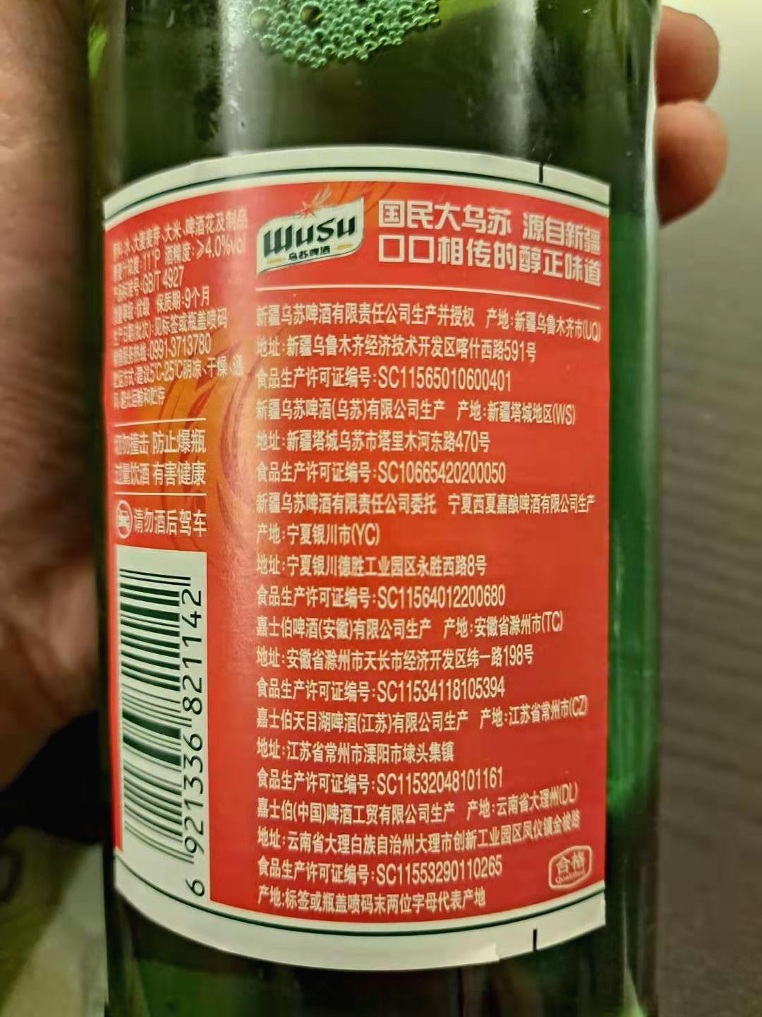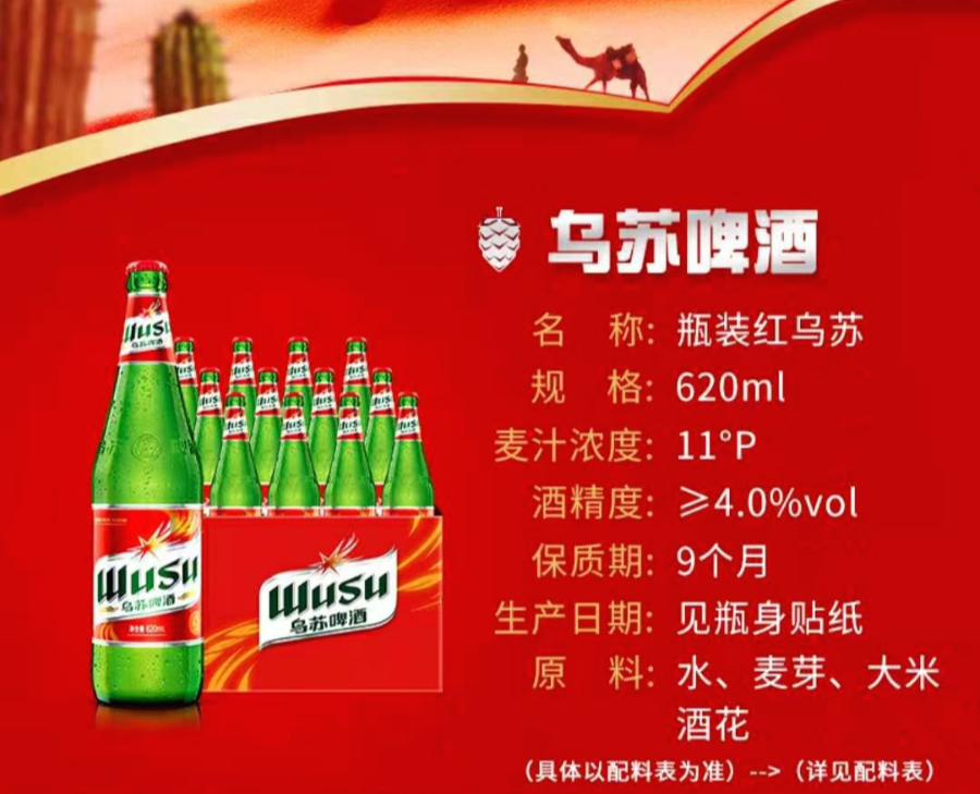 우수 맥주(乌苏啤酒)는 덴마크 칼스버그(Carlsberg) 그룹 소속인 중경(重庆) 맥주의 브랜드 맥주로, 80년대 우수시에서 탄생하였으나 지금은 본사가 중국의 우루무치(乌鲁木齐) 지역으로 이전을 하였지만 맥주의 중요한 생산기지는 여전히 우수시에 위치하고 있다고 합니다.
