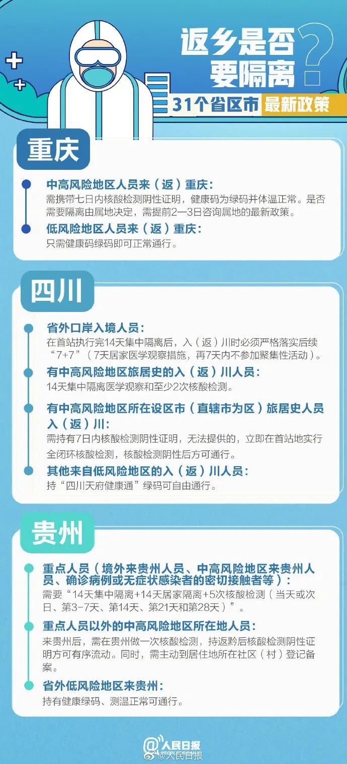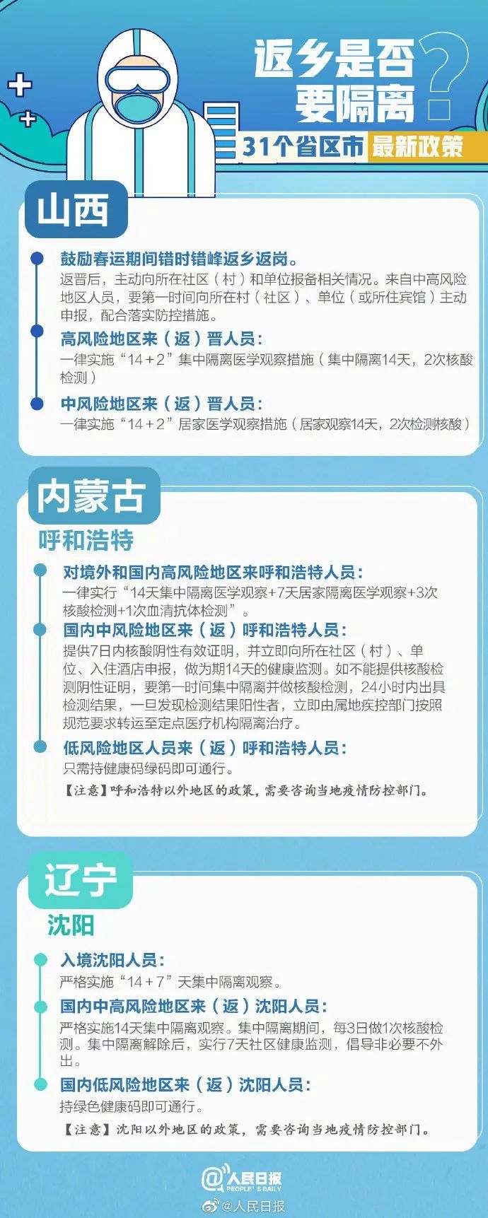 ->일률적으로 14일 집중 격리 의학 관찰 실시 + 7일 거주위원회 건강관리 + 3차례 핵산 검사 (1일 차, 14일 차, 21차에 각각 진행). 도착 전후 거주위원회(농촌, 기관, 숙소)에 보고 필요.