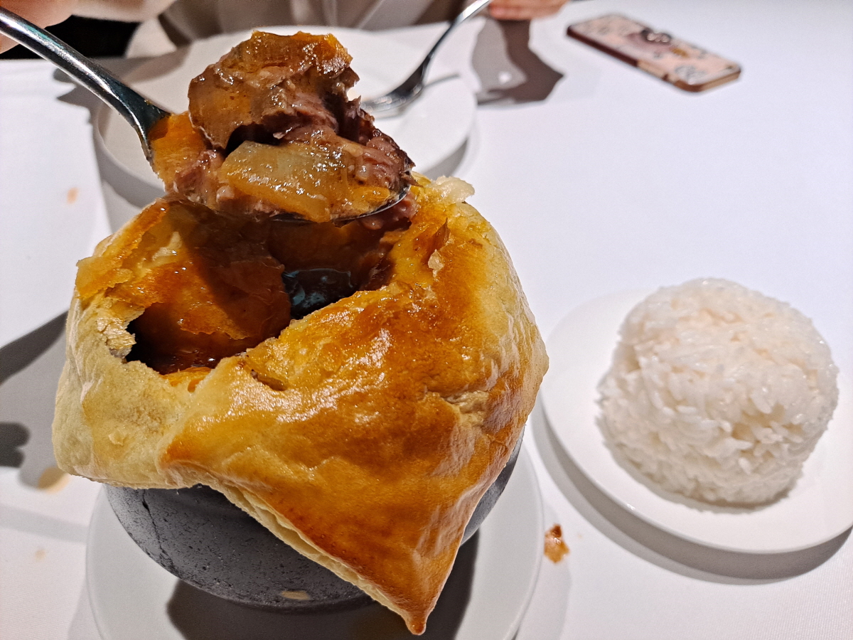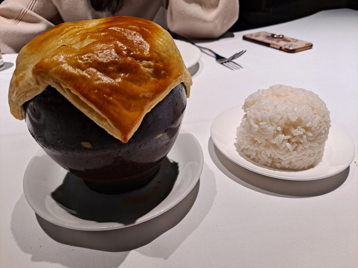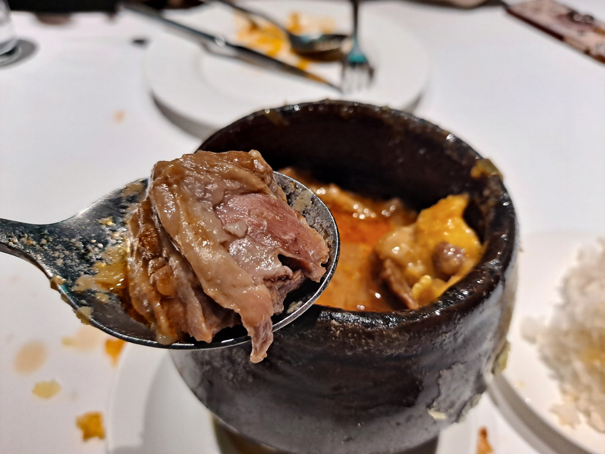 작은 단지에 푹 끓인 소고기 스튜가 담겨있는데