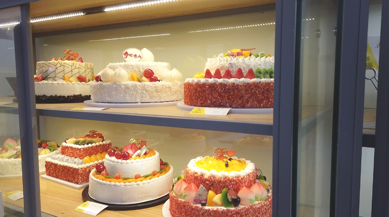 전시되어 있는 케이크도 정말 촌스럽습니다.