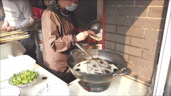 줄 서서 먹는 천진의 또 다른 명물 간식인 얼두어옌자까오(耳朵眼咋搞)입니다.