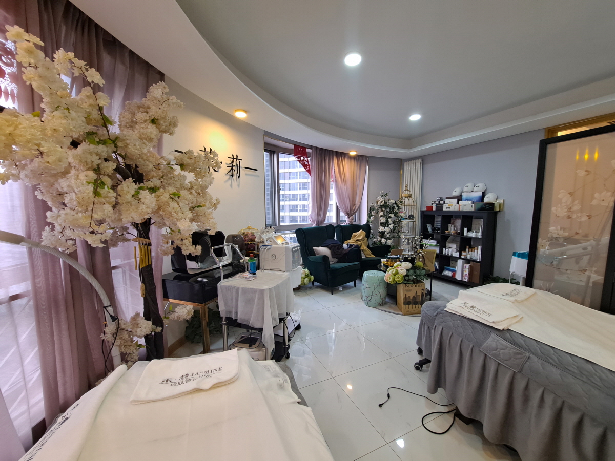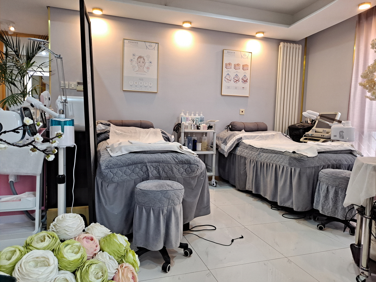 피부 관리용 침대가 두 대가 있으며,