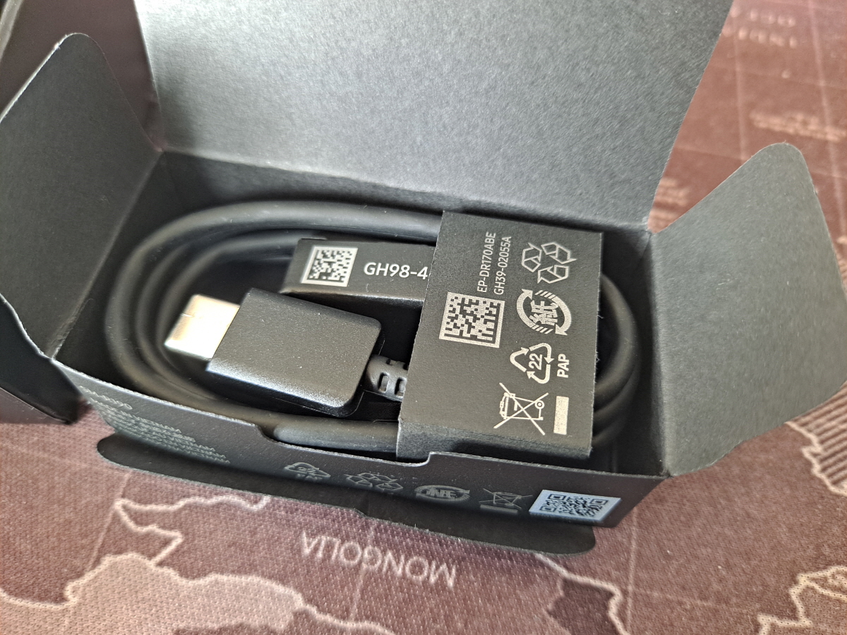 본체와 작은 박스에 충전 케이블과 여분의 고무캡이 담겨있습니다.