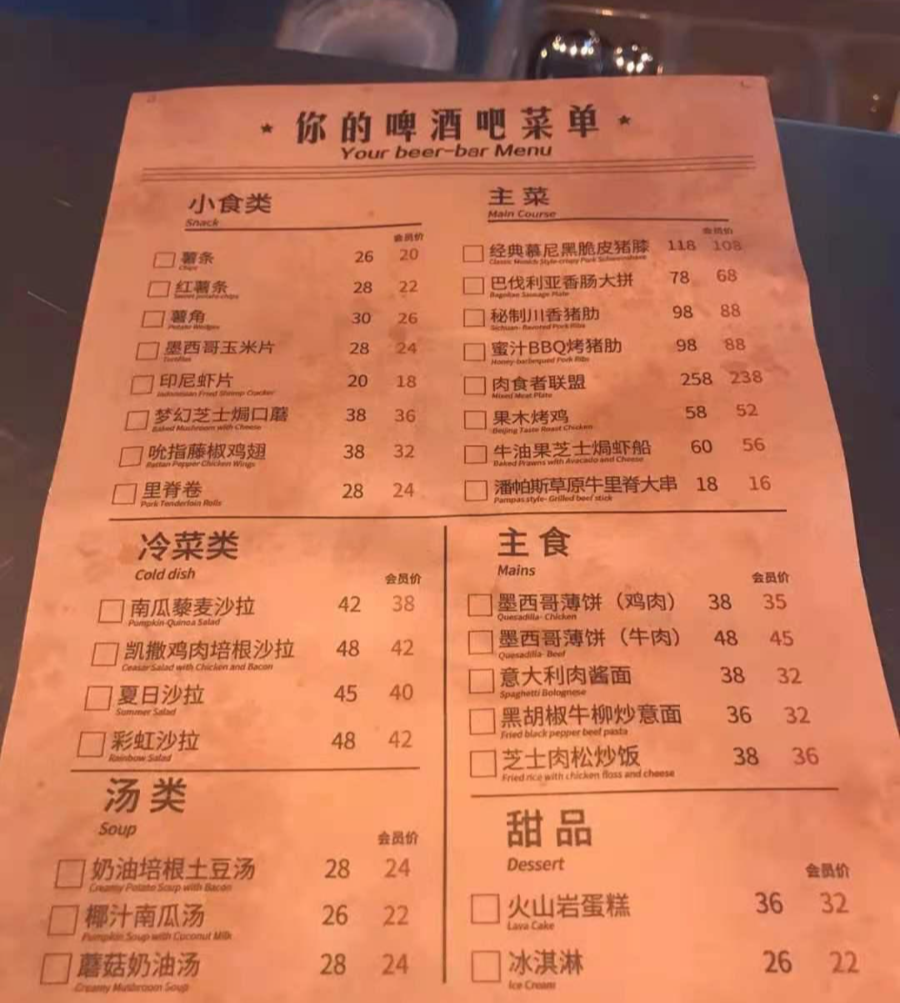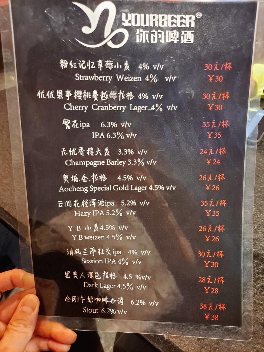 가격은 한 잔에 RMB24~38 수준으로, 수제 맥주 치고는 괜찮은 가격입니다.