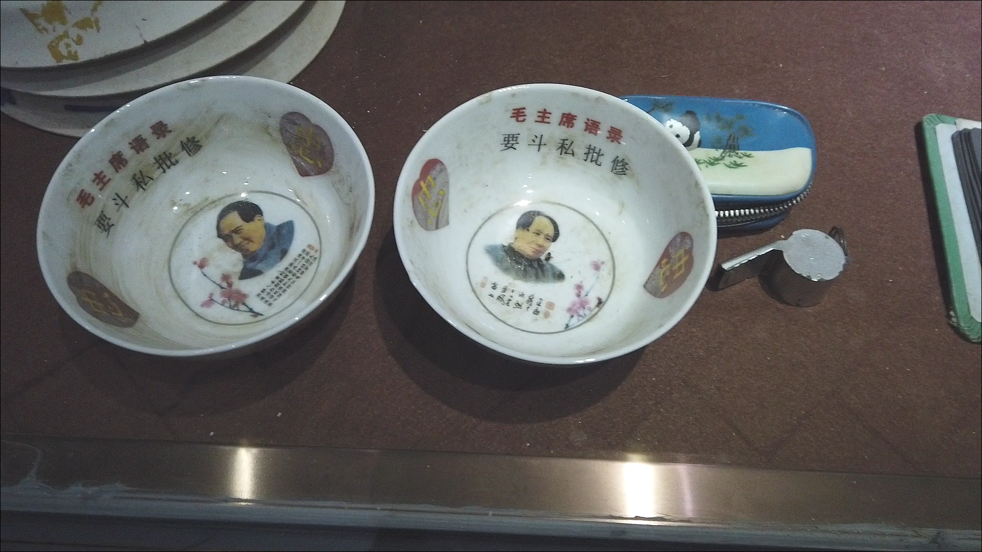 모택동 주석의 초상화가 담긴 술잔