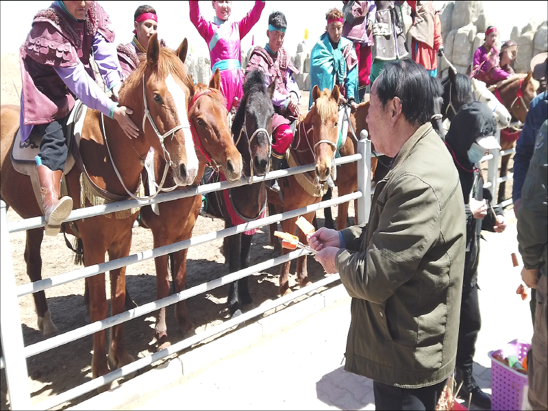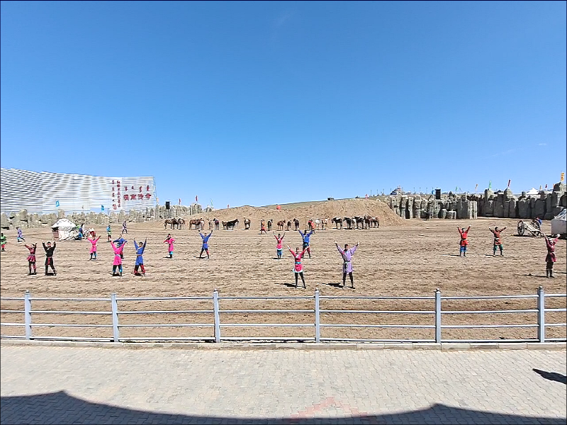내몽고 원주민들이 말을 타고 진행하는 공연인데