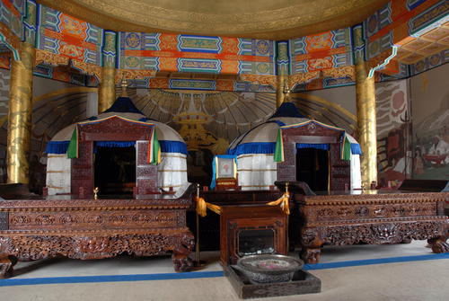 몽고 빠오 처럼 생긴 전시관에는 다양한 대형 벽화와 제단,