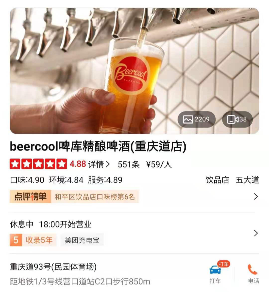 천진 오대도 민원광장 부근 수제맥주 전문점 'beercool(啤库精酿啤酒)'