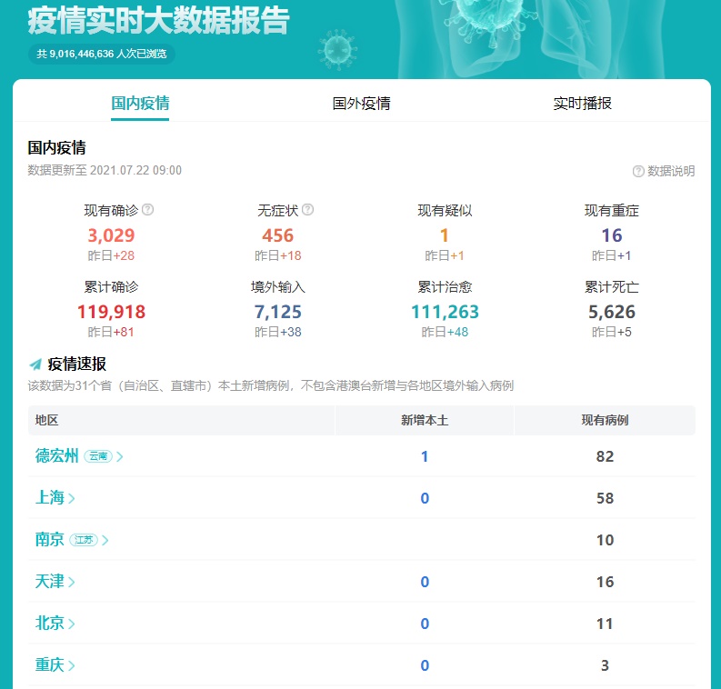 아직도 중국 곳곳에서 산발적으로 확진자가 발생하고는 있지만, 높은 백신 접종률 덕분인지 7월 22일 기준으로 전일 대비 국내 확진자는 28명, 해외유입 확진자는 38명만 증가로 일일 확진자 수는 100명 미만으로 유지가 되고 있고, 이러한 확진자들은 대부분 동남아 국가와 국경을 마주하고 있는 윈난 성 지역이나, 해외유입자와 밀접 접촉이 가능성이 높은 공항에서 주로 발생되고 있어 내륙의 주요 도시에서는 이러한 확진자 발생이 피부에 와닿지 않고 있는 것이 현실입니다.
