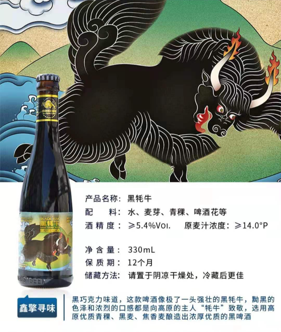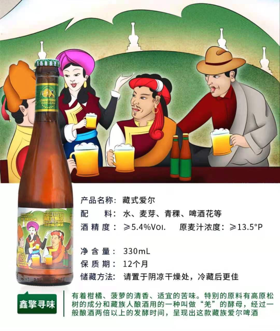 원료는 : 물(水) 맥아(麦芽) 고산지보리(青稞) 홉(啤酒花)