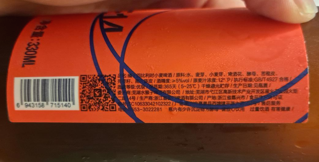 중국 수제 맥주 브랜드 'Myth Monkey Beer(水猴子)'의 Orange 14 Witbier (橘十四)