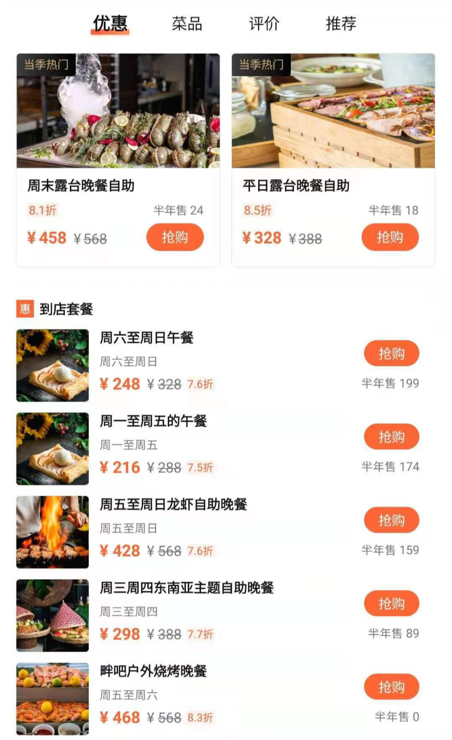 평일 저녁 뷔페 : RMB388 -> RMB328