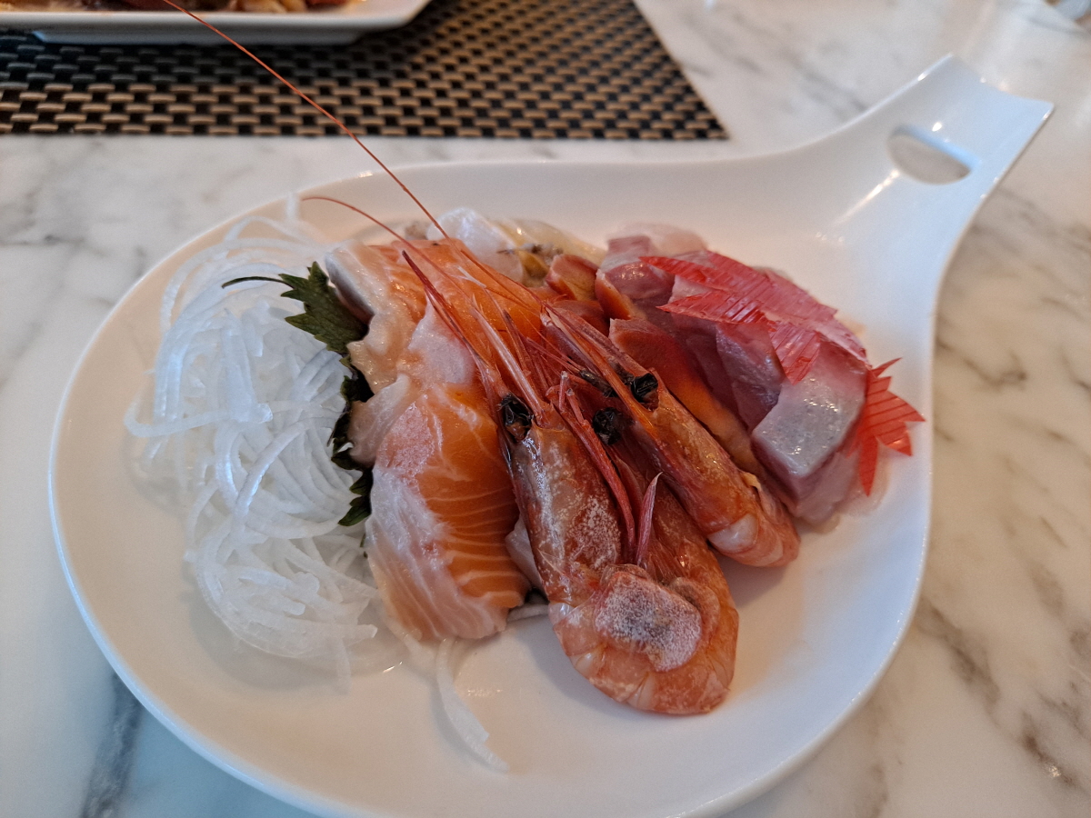 싱싱한 회 모둠을 한 접시 가져다주었고(리필 가능),