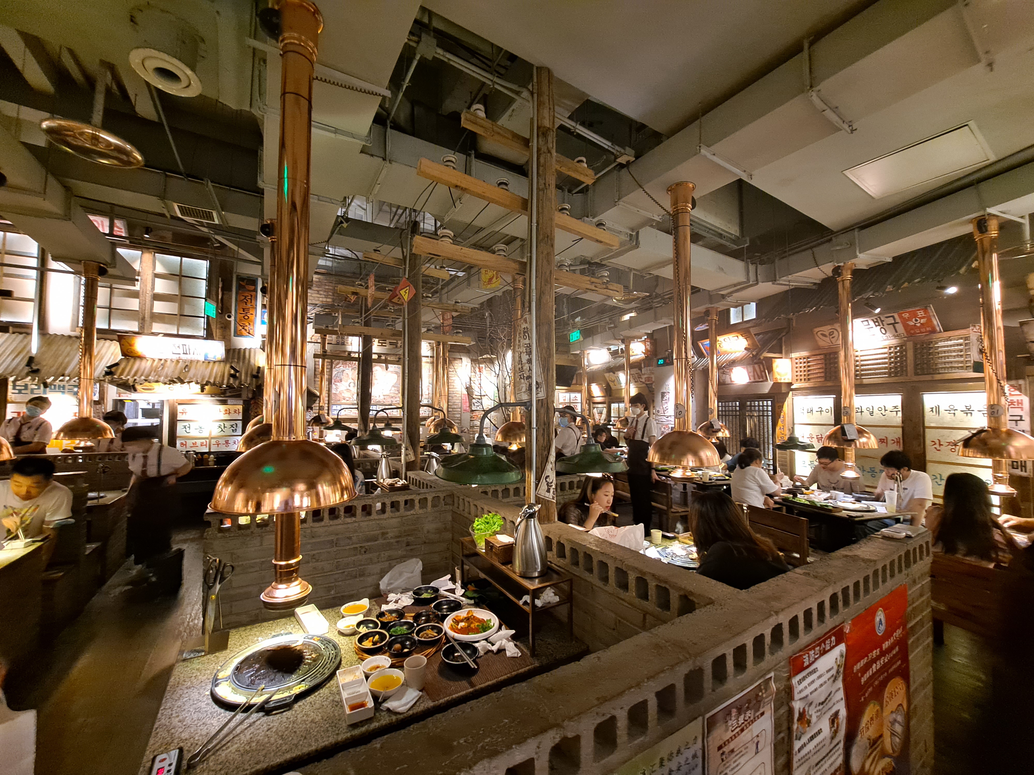 한국의 전형적인 고깃집 분위기가 물씬 나고 손님들이 빼곡합니다.