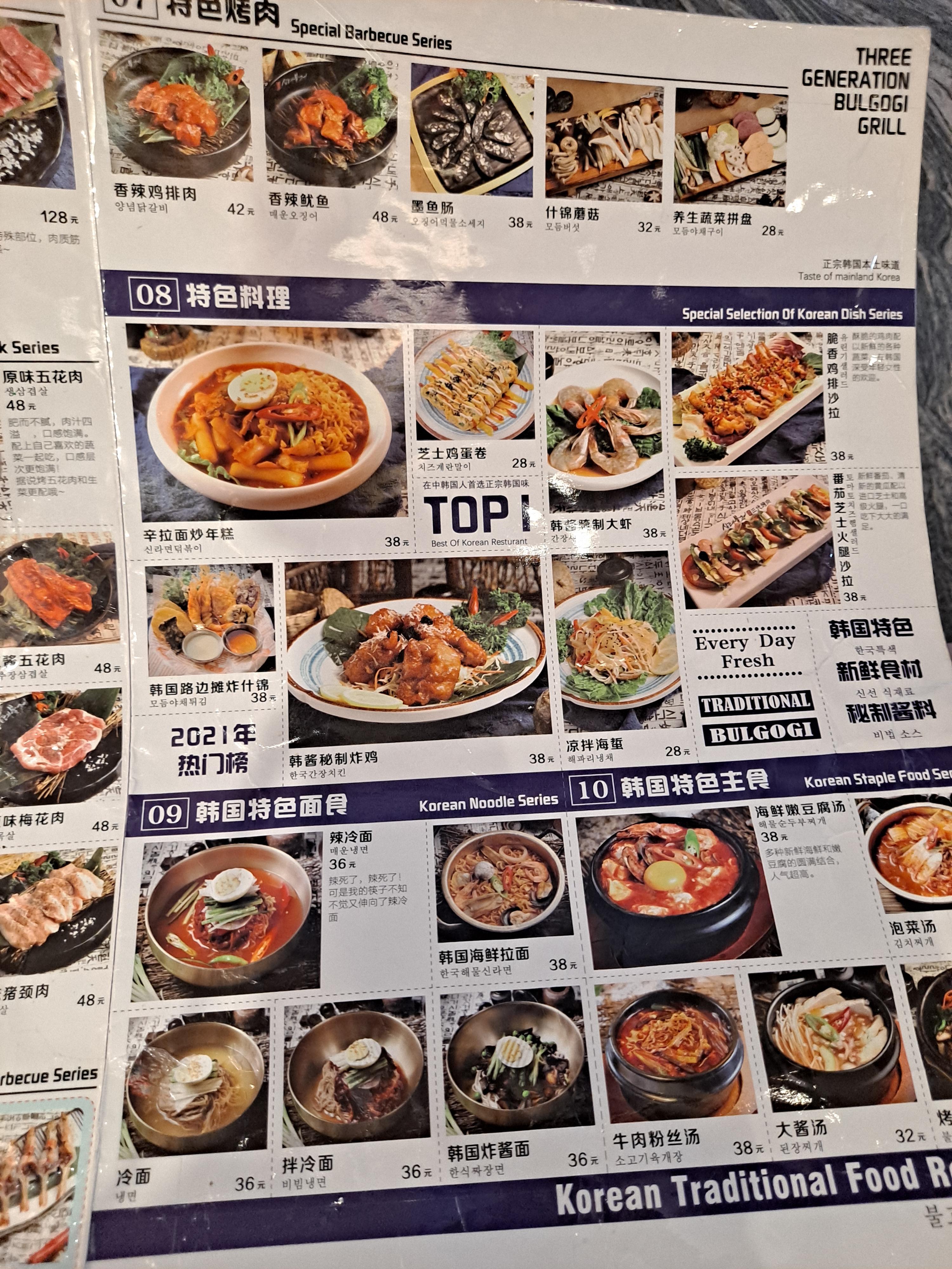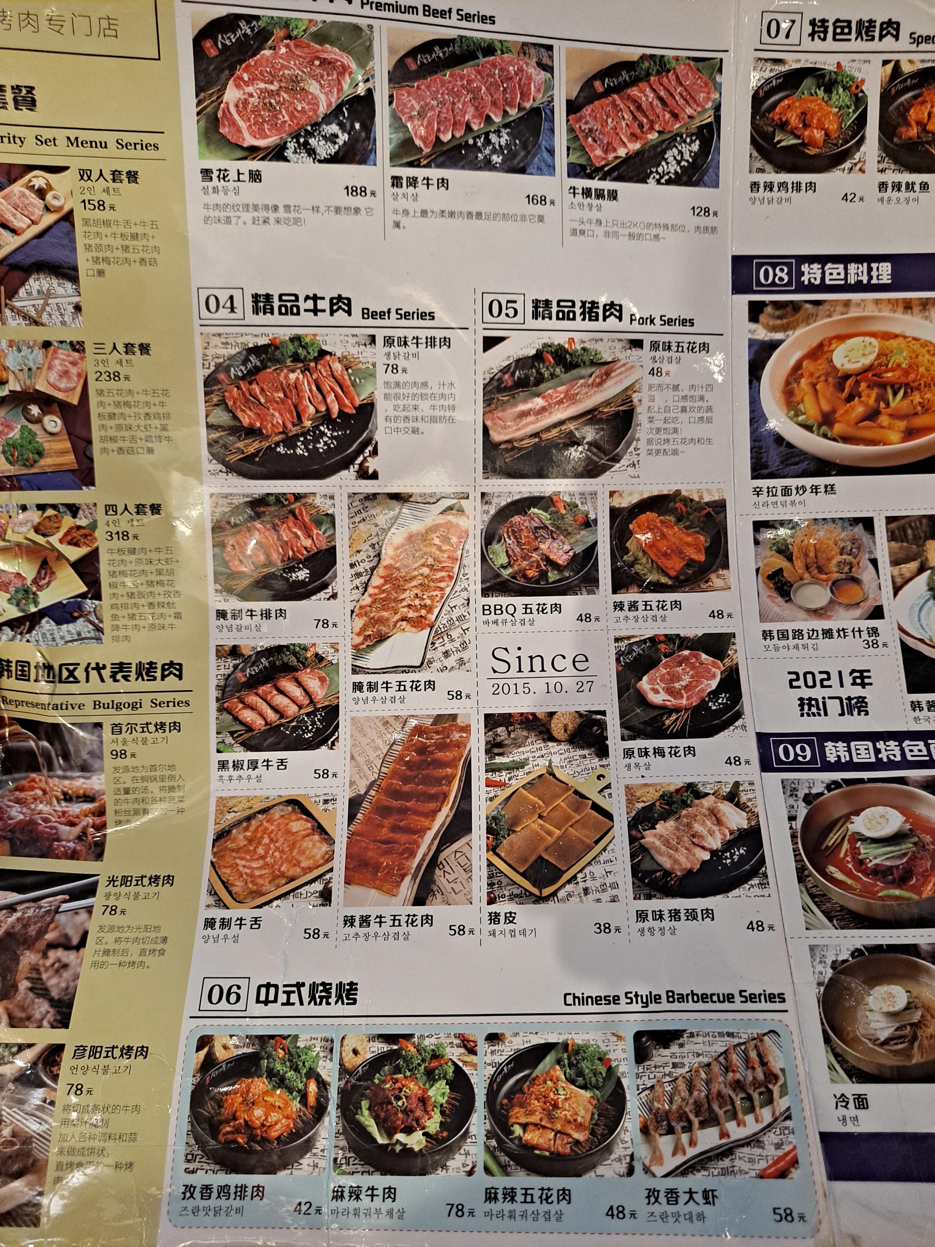 중국 천진시 한국 불고기 전문점 '삼대불고기(三代烤肉)' / 남개구 따위에청 지점(南开区 大悦城)