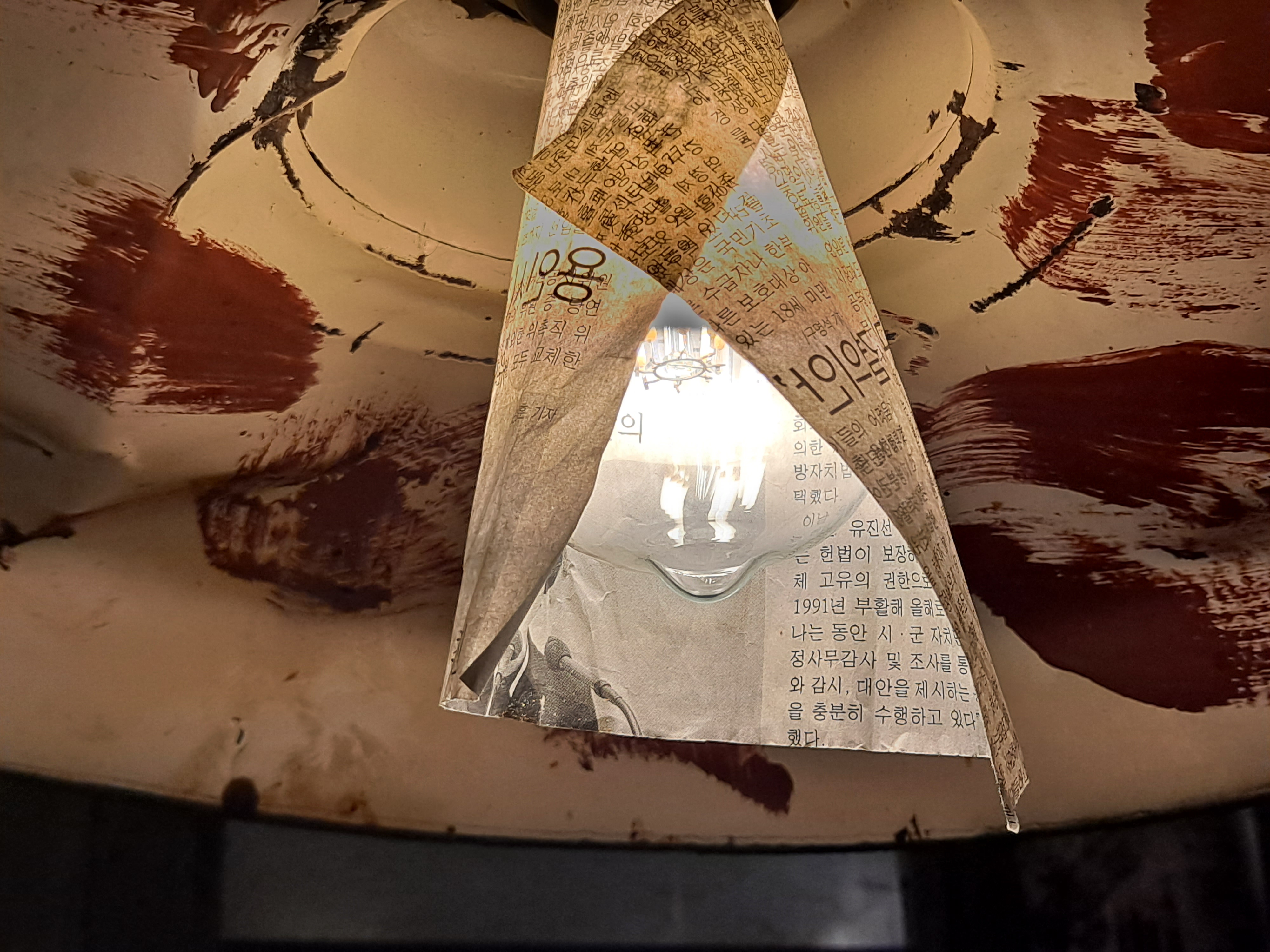 테이블 등 안의 전구를 감싼 종이조차