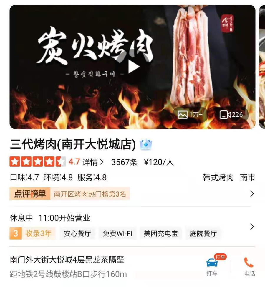 [sāndài kǎoròu nánkāiqū dàyuèchéngdiàn]