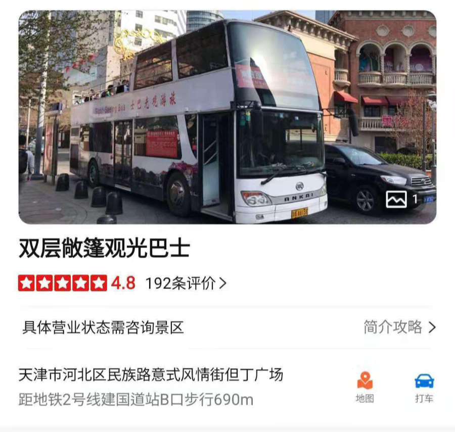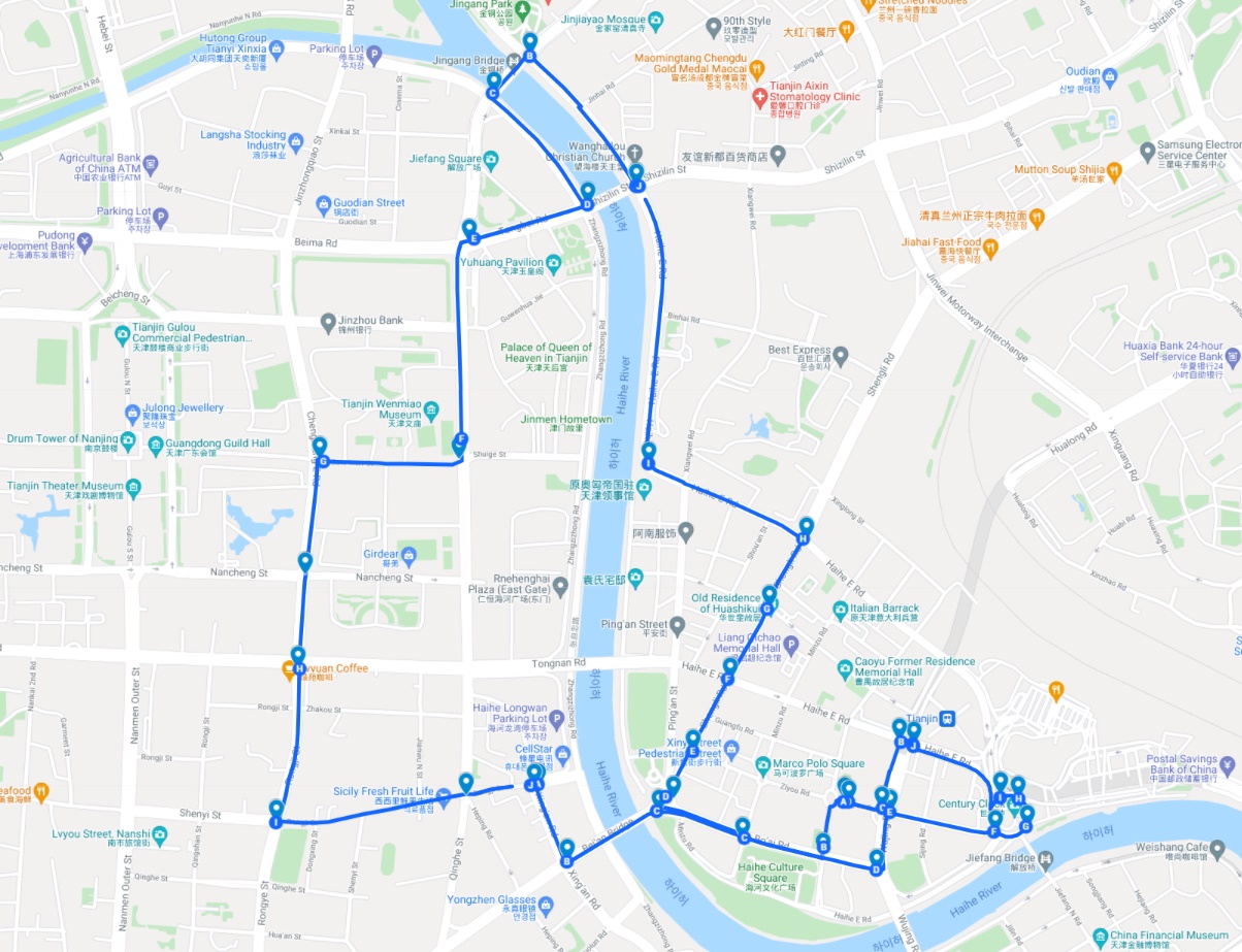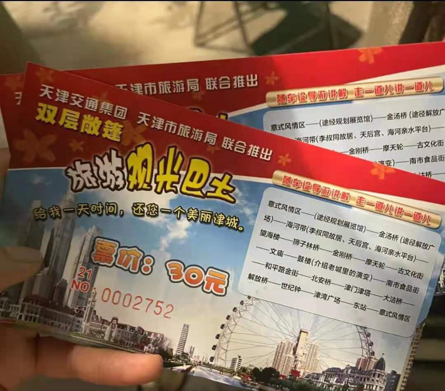 천진의 눈, 고문화거리, 고루, 남시 식품가, 해방교, 세기종, 천진역 등을 도는 코스입니다.