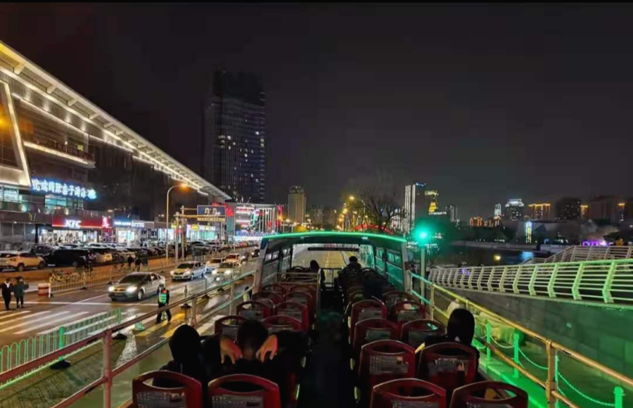 중국 천진시 2층 버스를 타고 시내 야경 투어 하기!