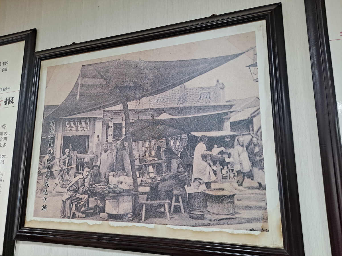 구석에 걸려 있는 만두 가게의 옛 모습의 사진이 인상적입니다.
