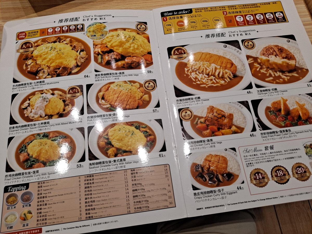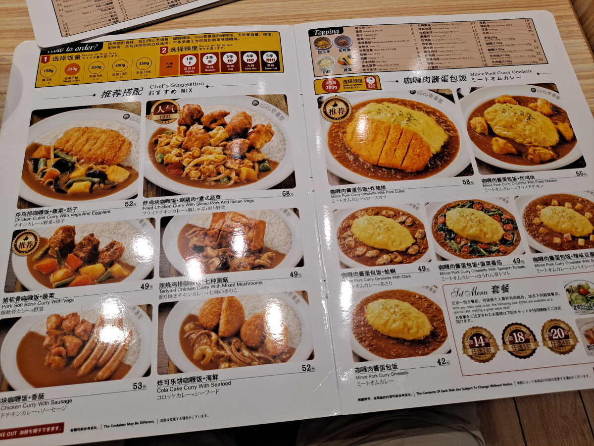 어떤 브랜드인지 궁금해서 검색을 해보니 전 세계 1,400여 개 지점을 가진 세계 NO.1의 카레전문점 브랜드이고, 1978년 일본에 1호점 오픈을 시작으로, 2004년 중국 진출, 2008년에는 한국에도 매장을 오픈했다고 합니다. 중국에는 현재 약 40여 개 매장을 운영 중이고, 제가 거주 중인 천진에는 총 4개의 매장이 있습니다.