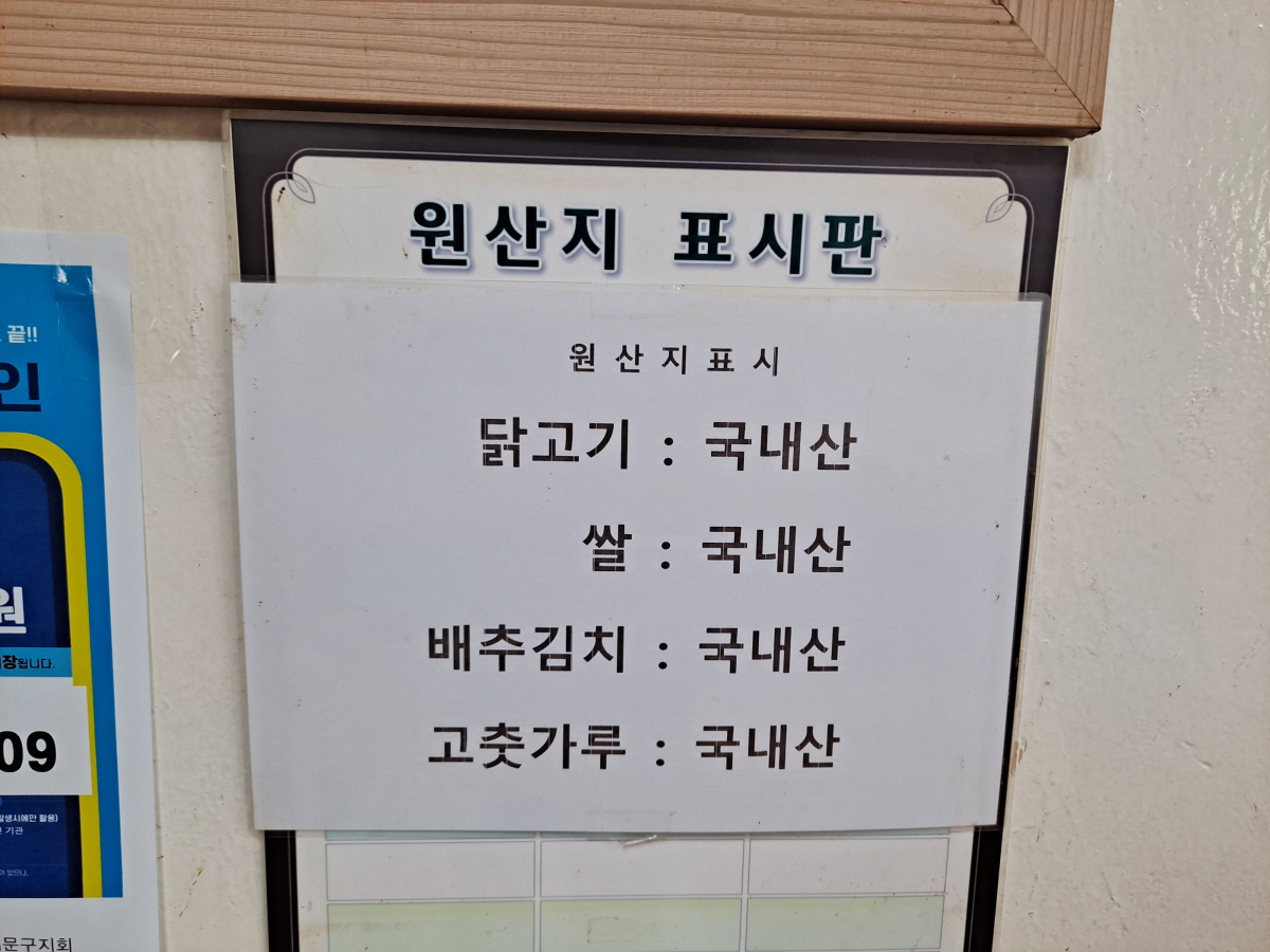 원산지 표시판을 보니 주요 식재료들이