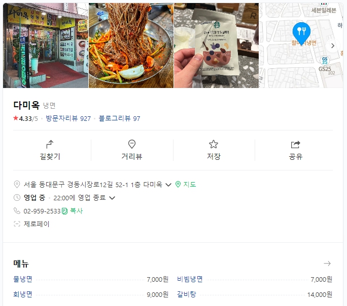 내가 선택한 냉면집은 바로 '다미옥'이다.