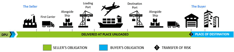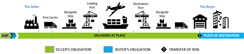 매도인이 수입국의 매수인이 지정한 장소까지 운송수단에 적재된 상태로 가져다만 주면 DAP(Delivered At Place)조건, 매수인이 지정한 장소까지 가져다주고 양하까지 해주면 DPU(Delivered at Place Unloaded), 추가로 수입 통관 및 세금 납부까지 해주면 DDP(Delivered Duty Paid)로 구분할 수 있습니다.