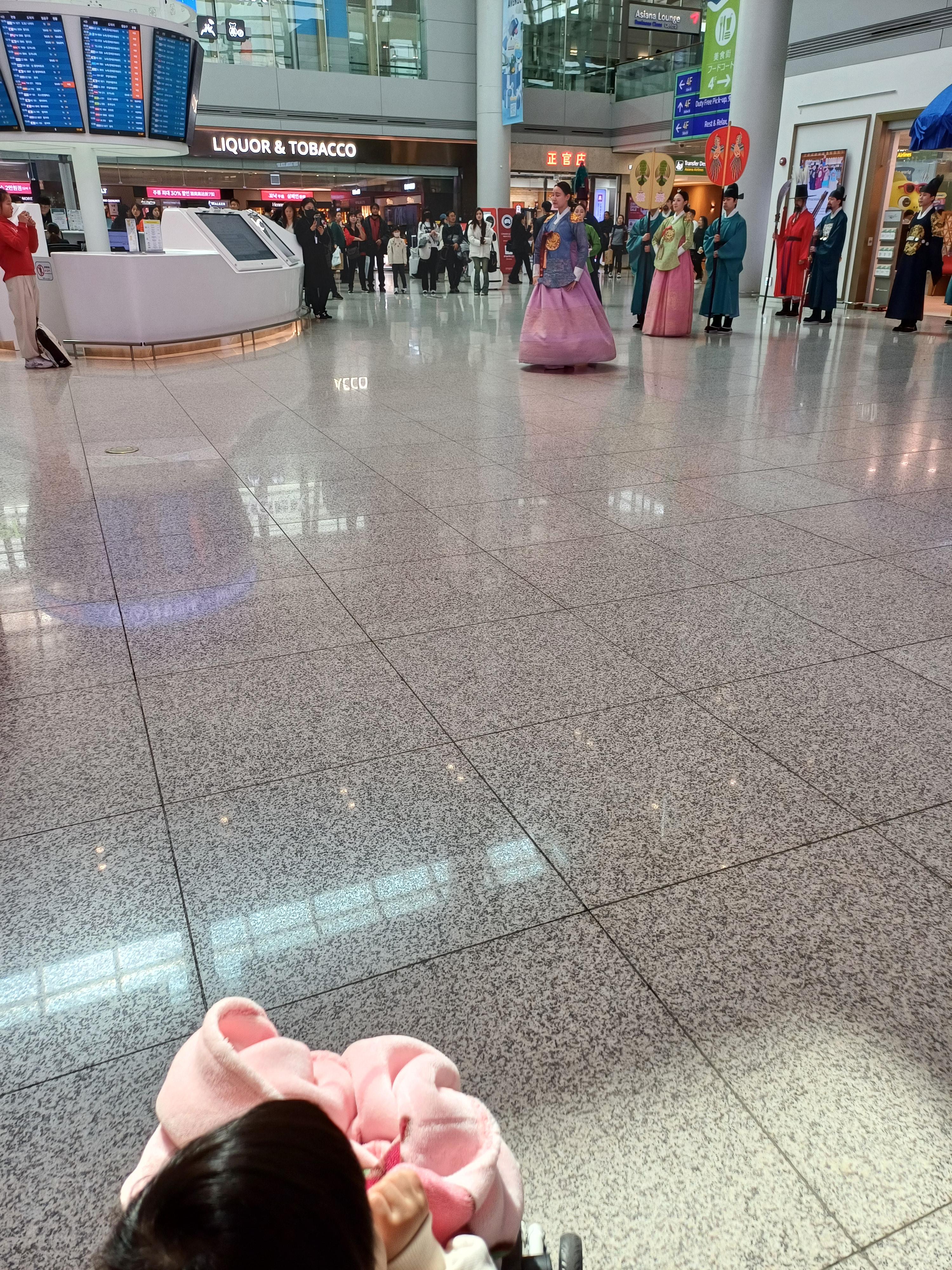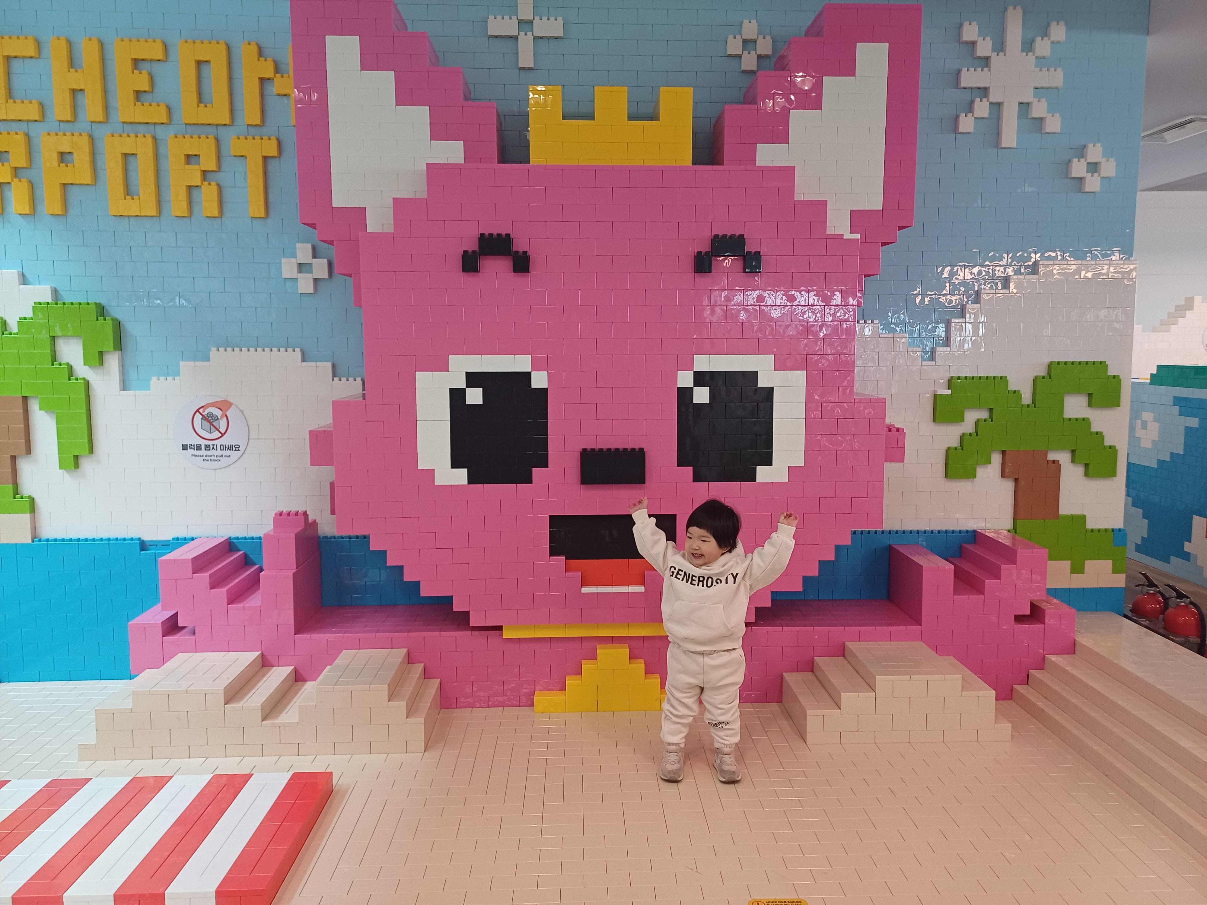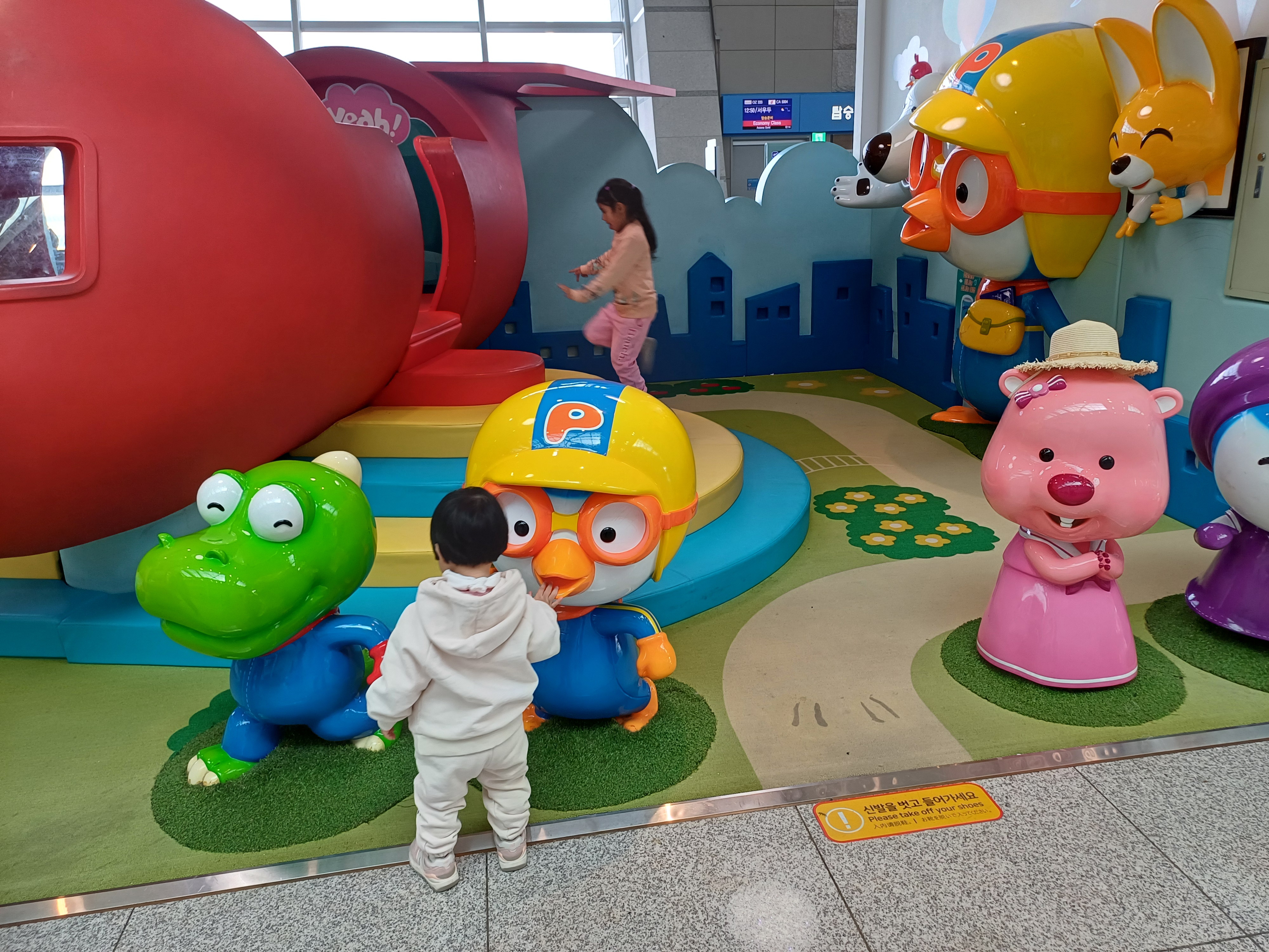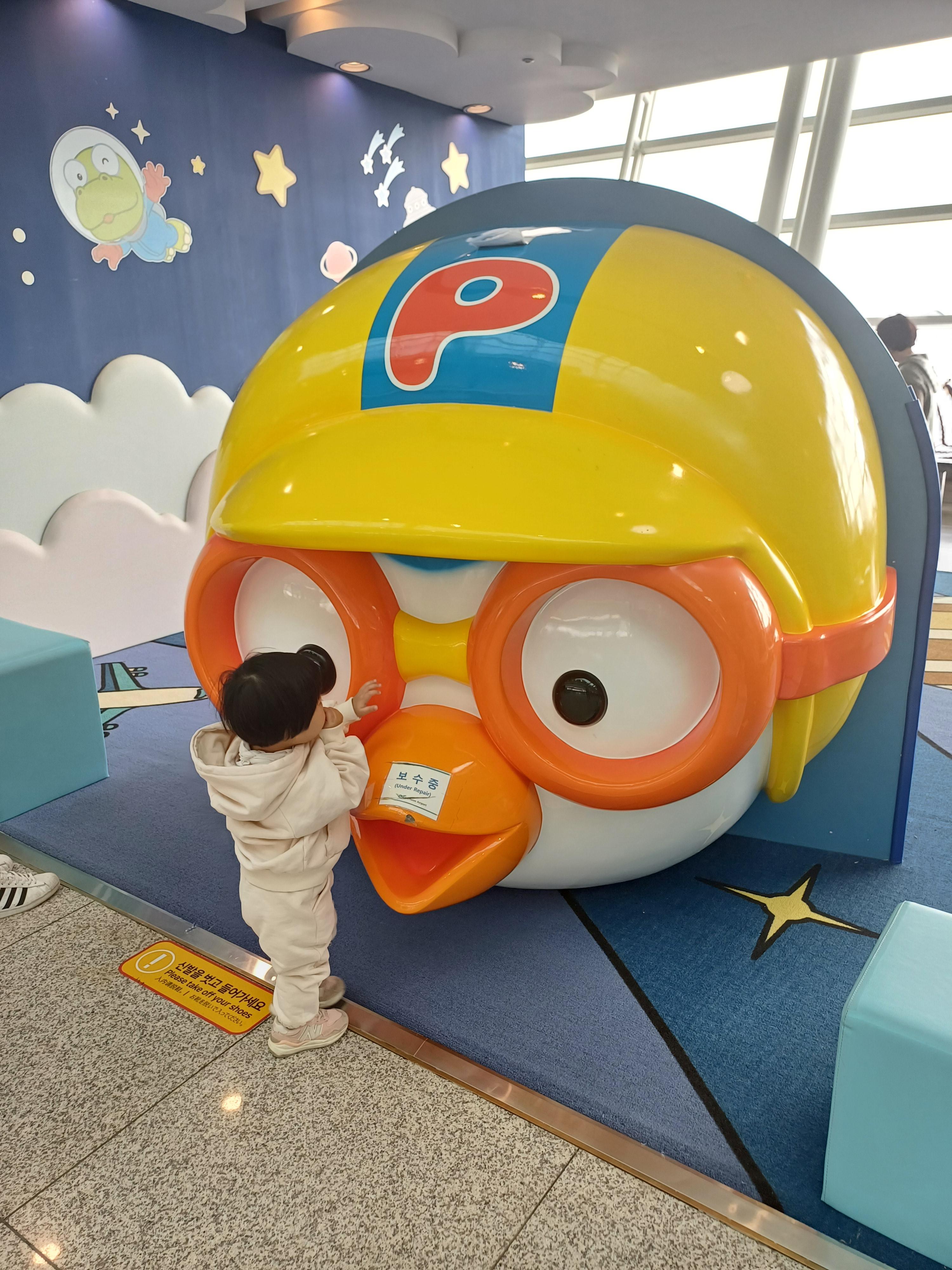 출국 심사 후 주로 면세지역의 여러 키즈존에서 아기와 함께 놀며 시간을 보냈고, 편의점에서 우유를 구매해서 주기도 하고, 깜짝 공연을 함께 관람하기도 했습니다.