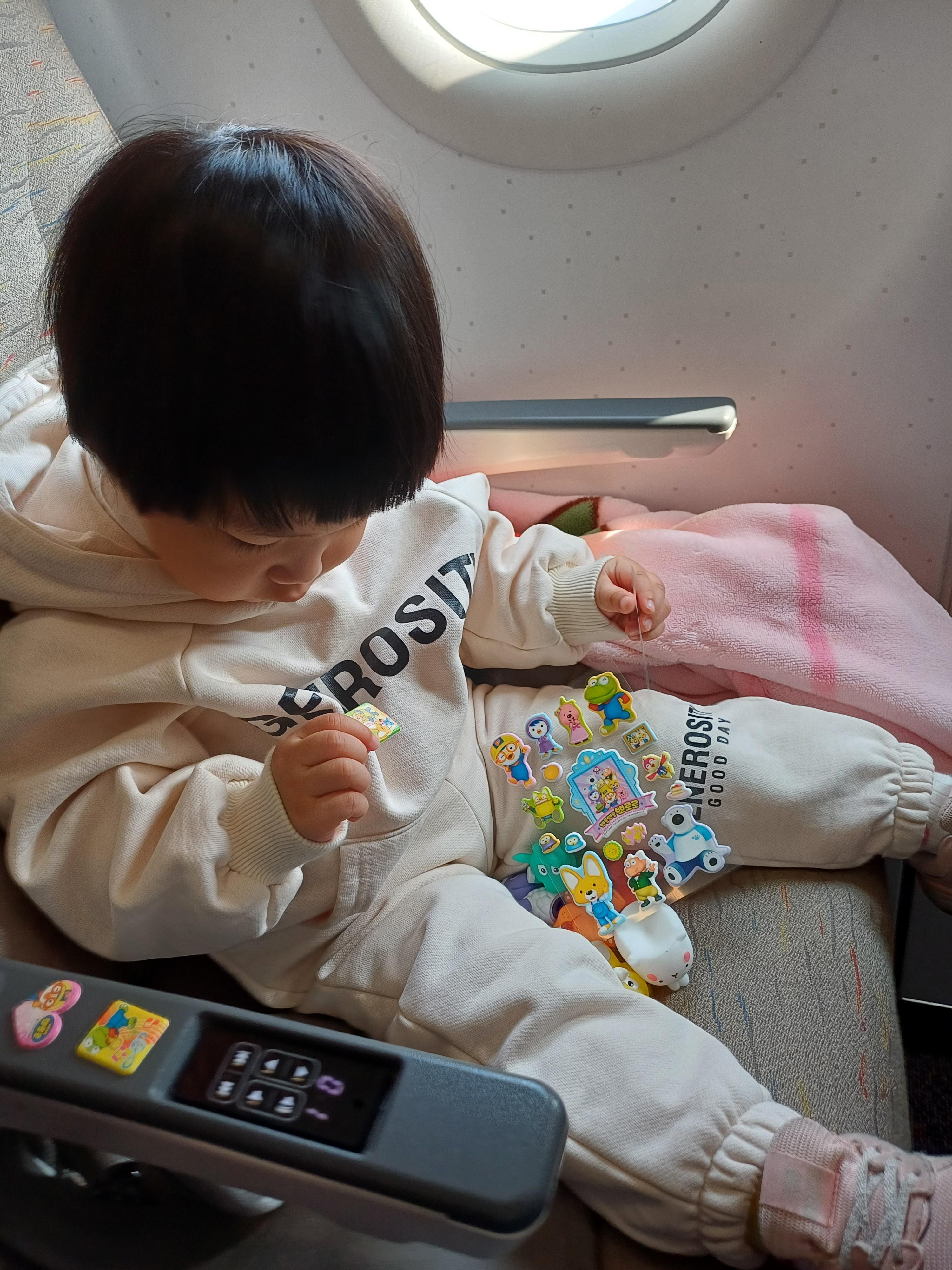 비행기 출발 전에 한바탕 울어서 조금 힘들긴 했지만, 비행 기간 내내 낮잠을 잘 자줘서 무사히 베이징에 도착할 수 있었으며, 철저하게 준비해 간 장난감과 간식들과 영상들 덕분에 어려운 순간을 순조롭게 극복할 수 있었습니다.
