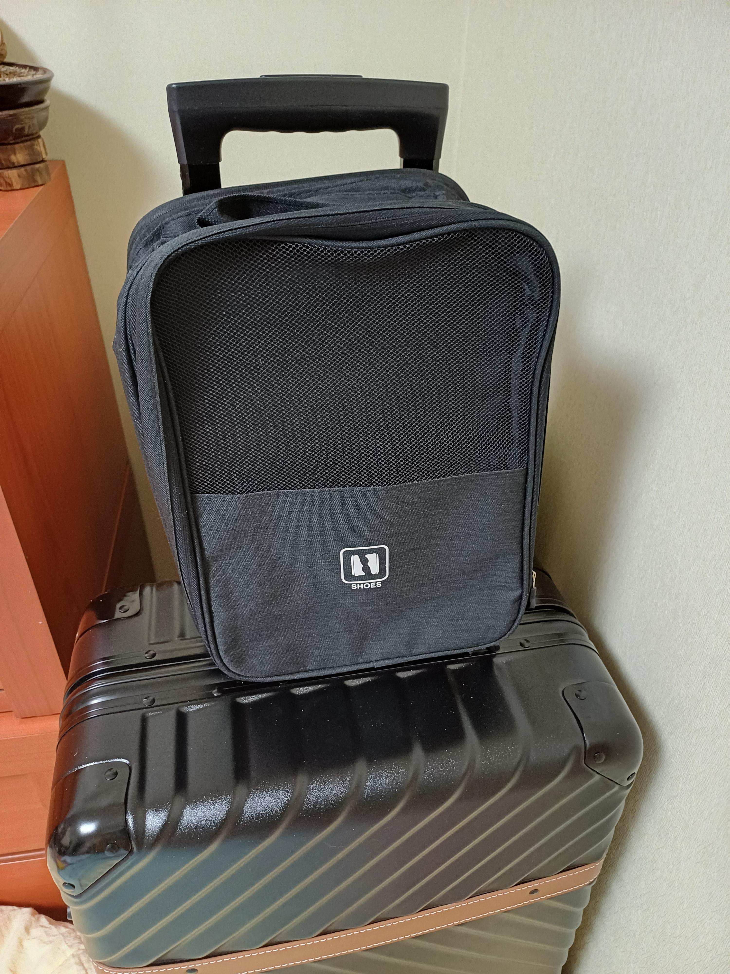 -기내용 캐리어를 수시로 꺼내고 열고 닫을 수 없기 때문에, 기내용 캐리어에 걸 수 있는 작은 가방을 구매를 했고, 언제든지 꺼내서 써야 하는 물건들 위주로 넣어 준비를 했습니다. (물,간식,장난감,기저귀,물티슈,손수건 등) 캐리어 보조가방은 네이버 쇼핑몰에서 6천 원을 주고 구매했는데 정말 가성비 최고였습니다. (아래 판매처 링크 첨부)