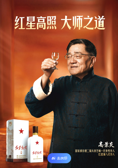 일단 홍성이과두주를 살펴보면, 초록색 병에 붉은 별 홍성(红星) 마크가 가운데 위치하고 있고, 자세히 살펴보면 별 우측 하단에 순곡고체발효백주 / 纯粮固态发酵白酒 [chún liáng gùtài fājiào báijiǔ] 라는 마크가 새겨져 있는데, 공인된 고태법 공정으로 제조한 이과두주에만 붙있을 수 있는 마크라고 한다.