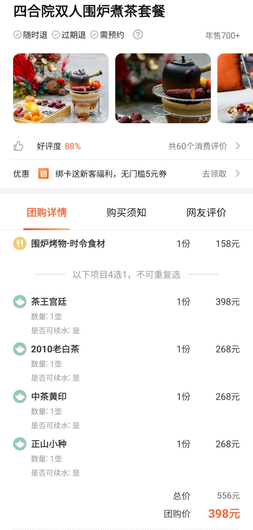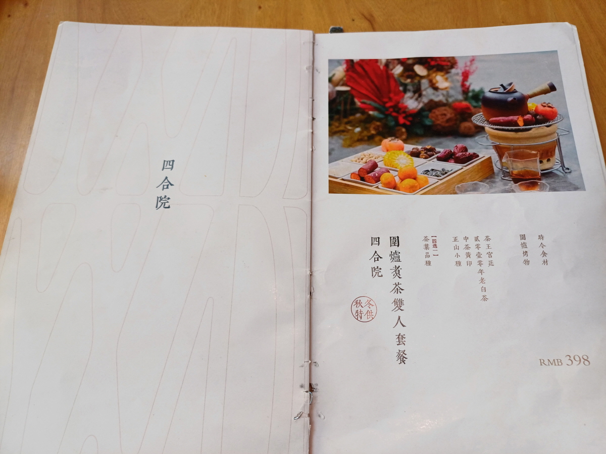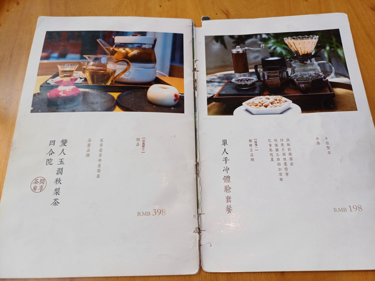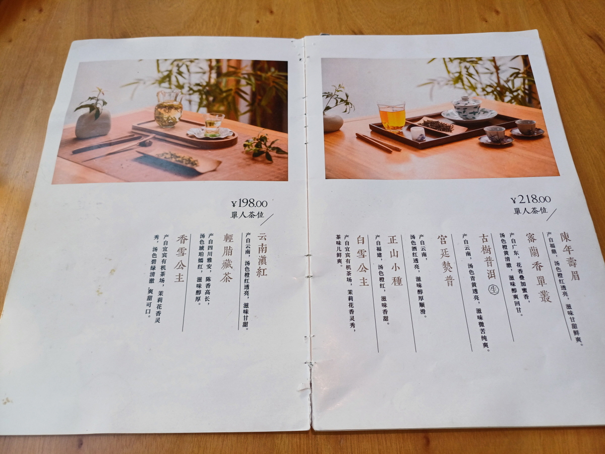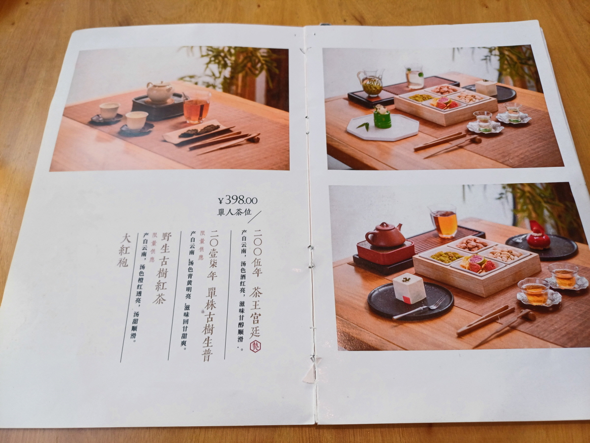 확실히 가격대가 높은 편이었으며, 기본적으로 인당 200위안 정도는 잡아야 하는 것으로 판단되어 디엔핑에서 가장 잘 팔리고 있는 2인 세트를 주문했다. 주변을 살펴보니 찻집의 다른 손님들도 대부분 아래의 2인세트를 이용하고 있었다.