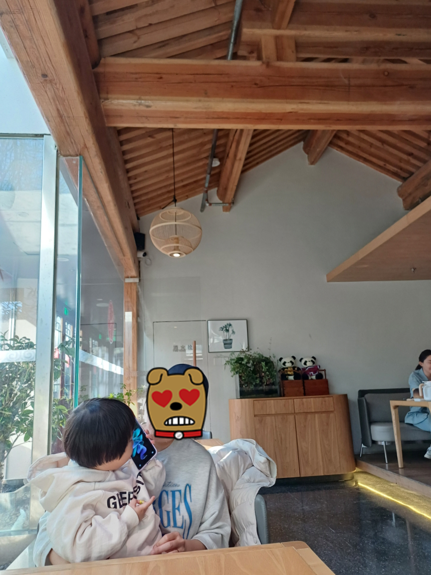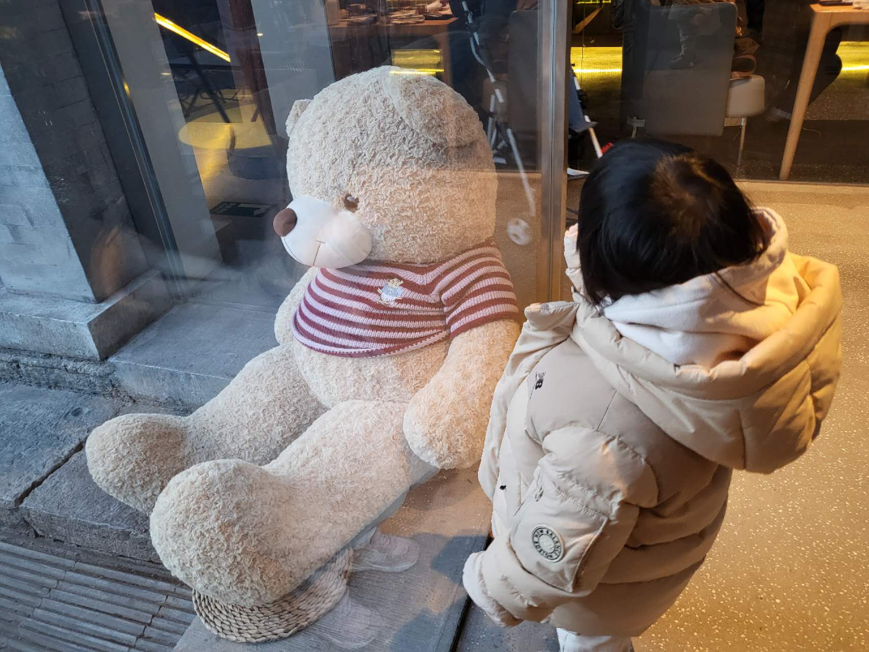 찻집 구석에 큰 인형이 있어서 아이가 한참을 구경을 했다.