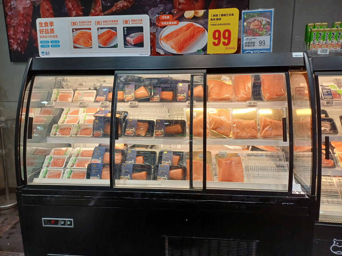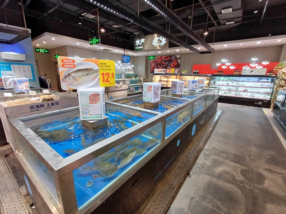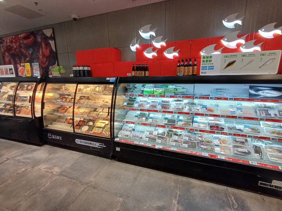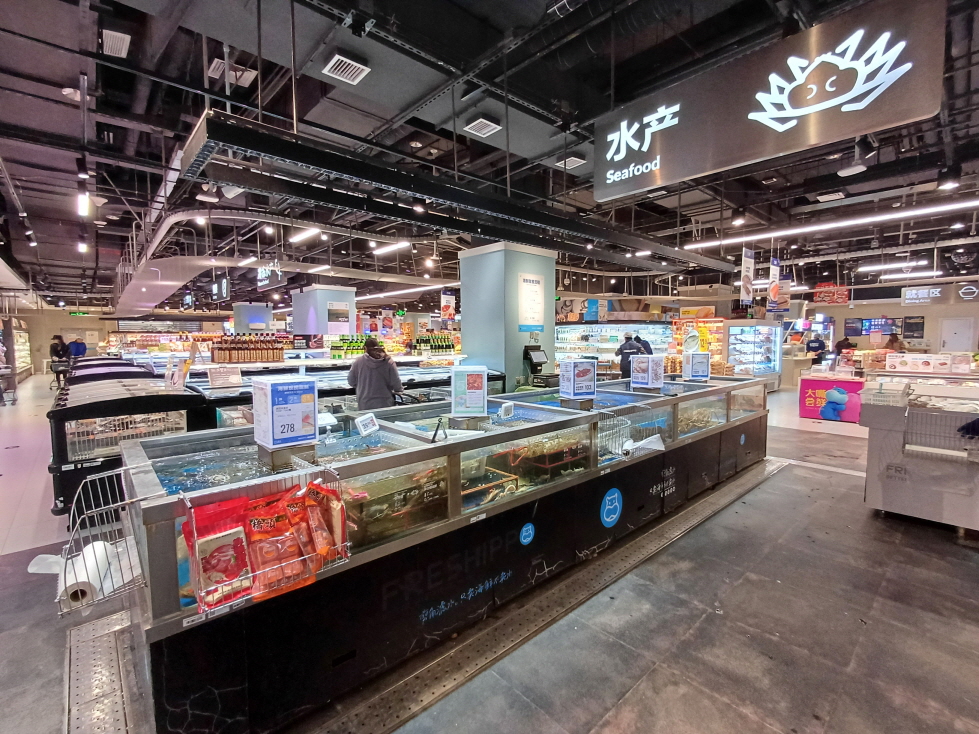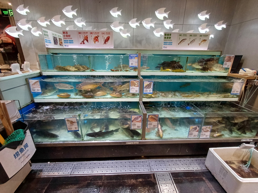 수산물 코너가 인상적이었는데, 다른 중국 마트들과 다르게 매우 청결하고 잘 정돈된 느낌이었다. 확실히 온라인으로도 믿고 주문해도 되겠다는 생각이 들었다.