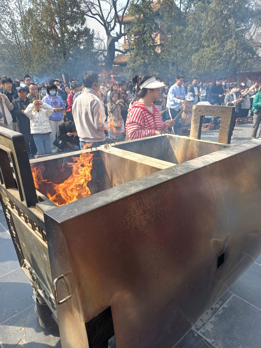 받은 향에 불을 붙이고 기도를 한 후 향을 태우는 대형 화로에 넣어준다.