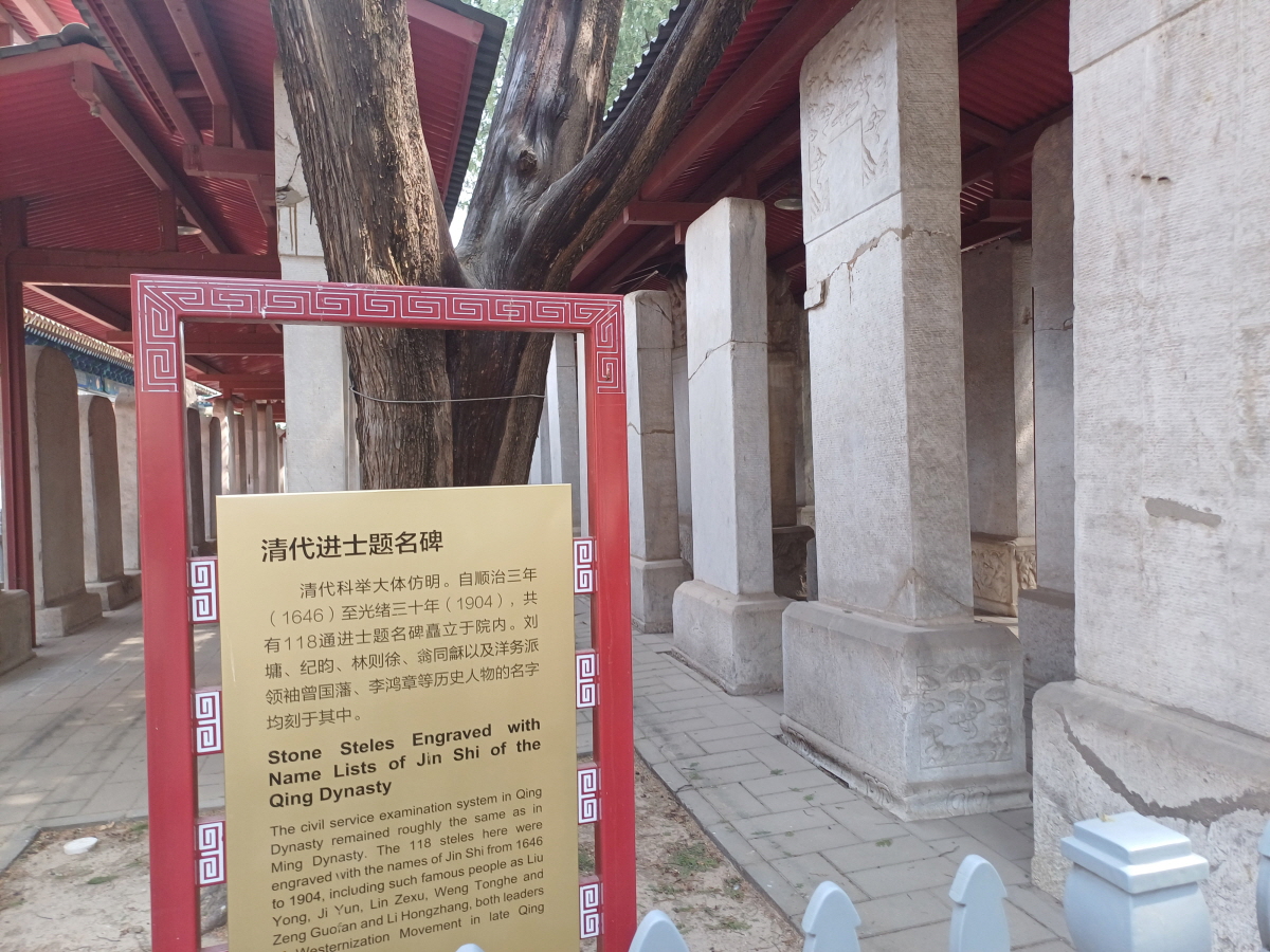 공묘 앞마당에는 수많은 비석들이 세워져 있는데, 진사비림(进士碑林)이라 부르는 198개의 비석들인데 명청 시대 진사 급제자의 이름들이 새겨져 있다고 한다.