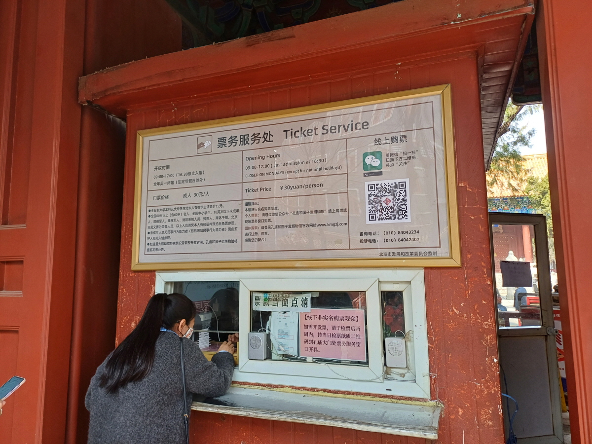 공묘/국자감 입장권은 인당 RMB30으로 비교적 저렴한 편이다.