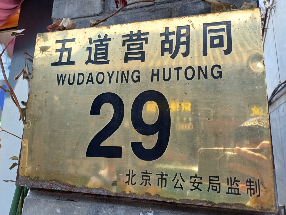 -중문 주소 : 北京市 东城区 五道营胡同 [ běijīngshì dōngchéngqū wǔdàoyíng hútòng ]