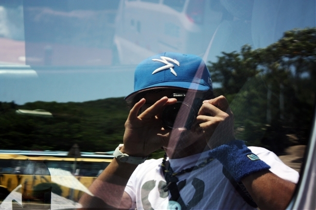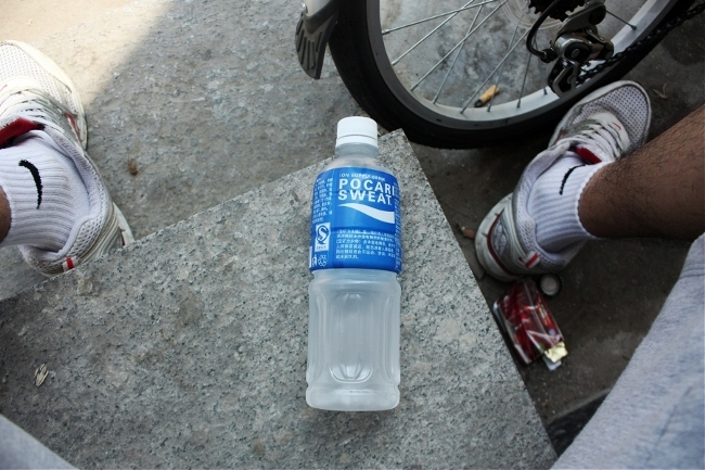 근처 테스코(마트)에서 구입한 15위엔짜리 티셔츠, 흐르는 땀을 닦을 야구아대, 그리고 오토포커스 고장난 번들렌즈를 낀 450D