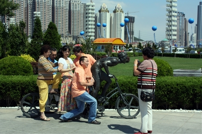 자전거 조형물에 달라 붙어서 사진 찍는 중국인들,,,