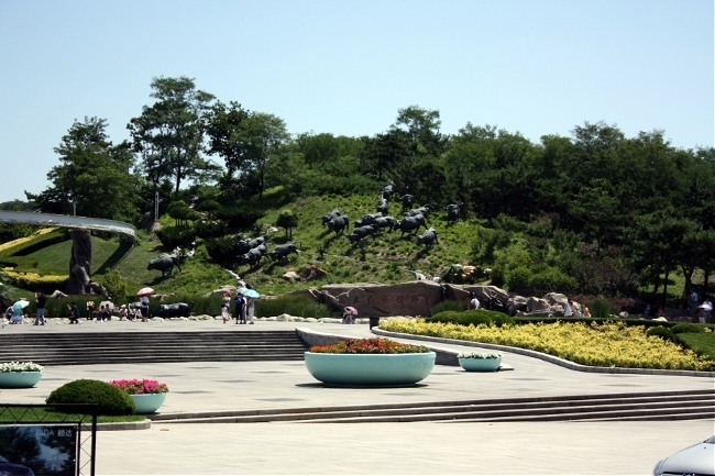소떼 무리 동상들이 동물원 옆에 자리 잡고 있다.