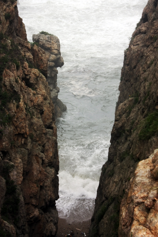 돌기둥에 기대어 사진을 찍고 있는데 파도가 찰싹대면서 물방울을 튀긴다.